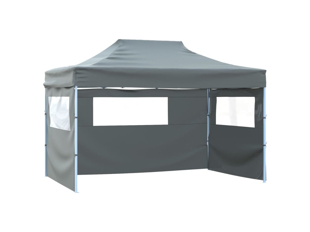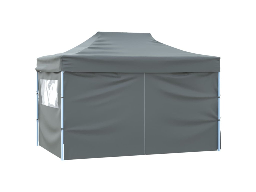 Skládací party stan je vyrobený z vysoce odolné oceli s práškovým nástřikem, a je tudíž velmi robustní. Střecha je vyrobena z oxfordské látky opatřené vrstvou PVC, takže je nepromokavá a chrání proti UV záření. Stan navíc disponuje čtyřmi bočními stěnami. V jedné z nich je průchod na zip, abyste se do stanu i z něj snadno dostali. Altán snadno sestavíte pomocí lan a kolíků do země, které jsou součástí balení.