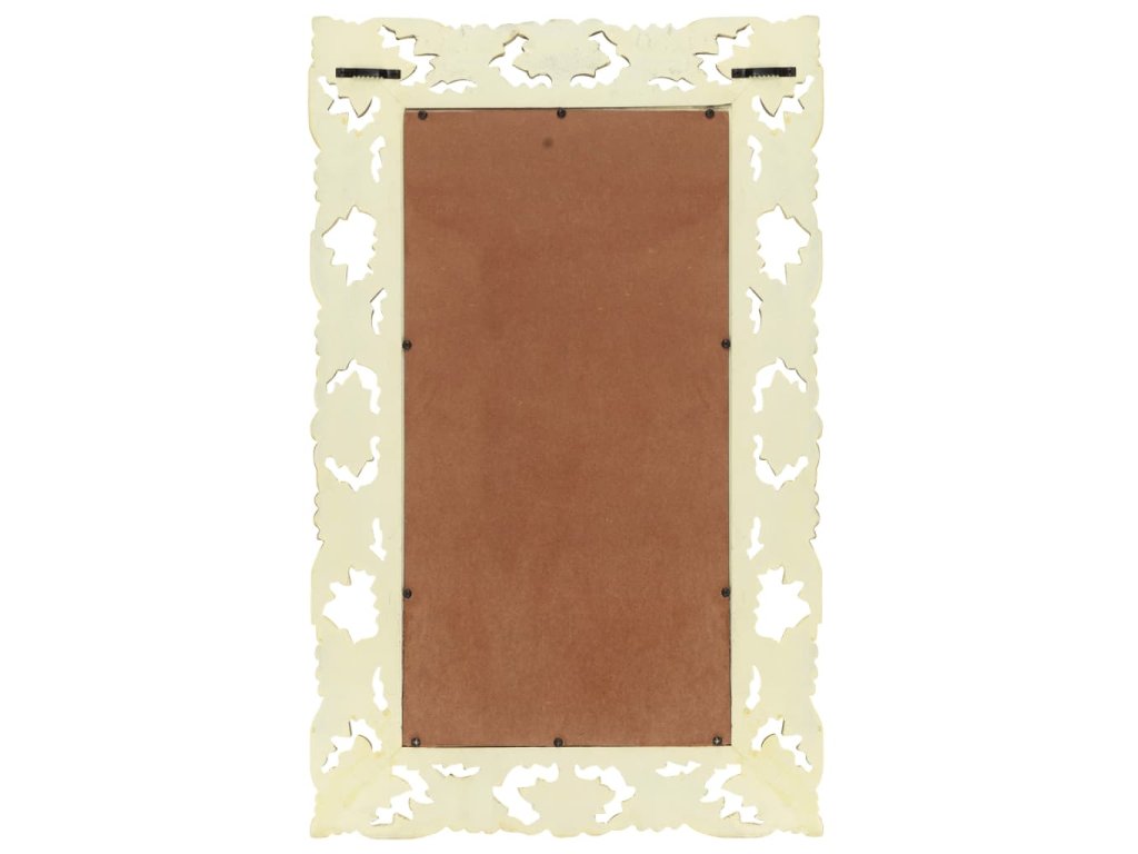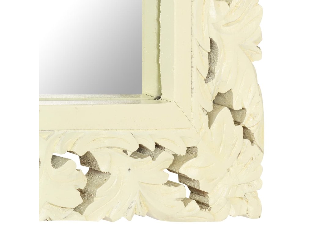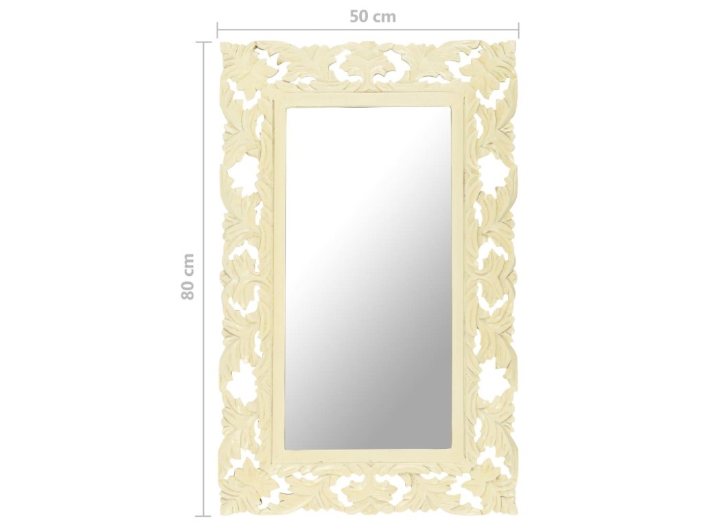 Masivní mangovník je tropické tvrdé dřevo, které jednak unese značnou váhu a zároveň výborně odolává působení času a neopotřebovává se. Precizní řemeslné zpracování a nádherná kresba dřeva dává každému kusu mírně odlišný charakter. Ručně vyřezávaný vzor zdůrazňuje krásu zrcadla.