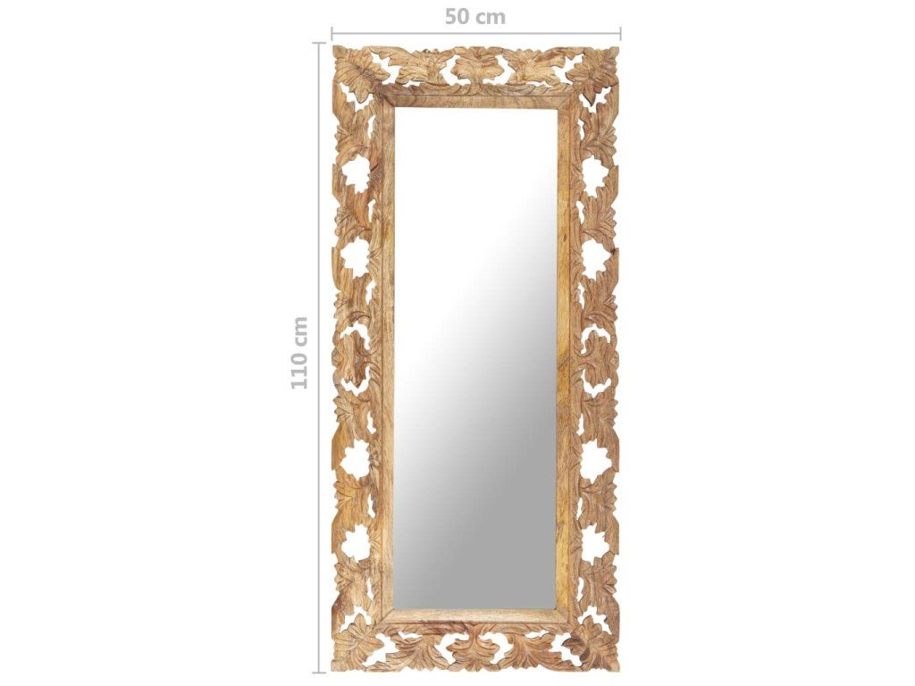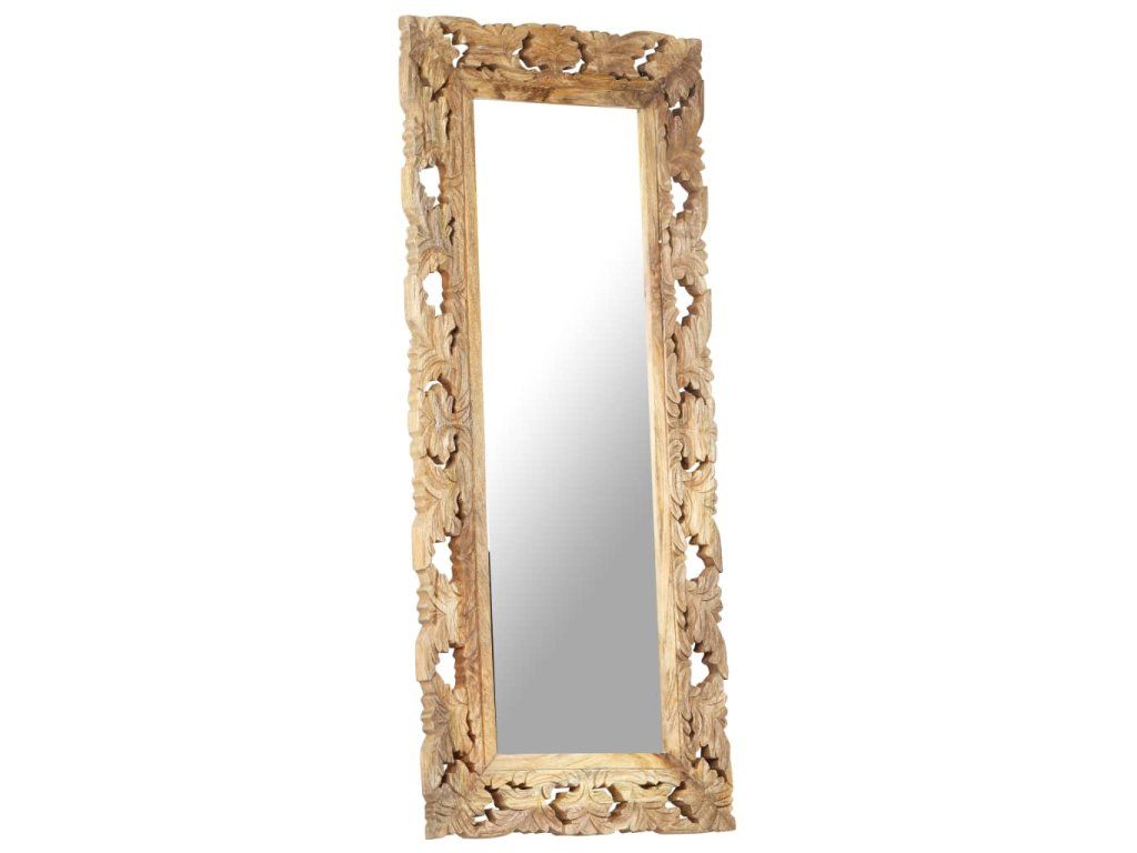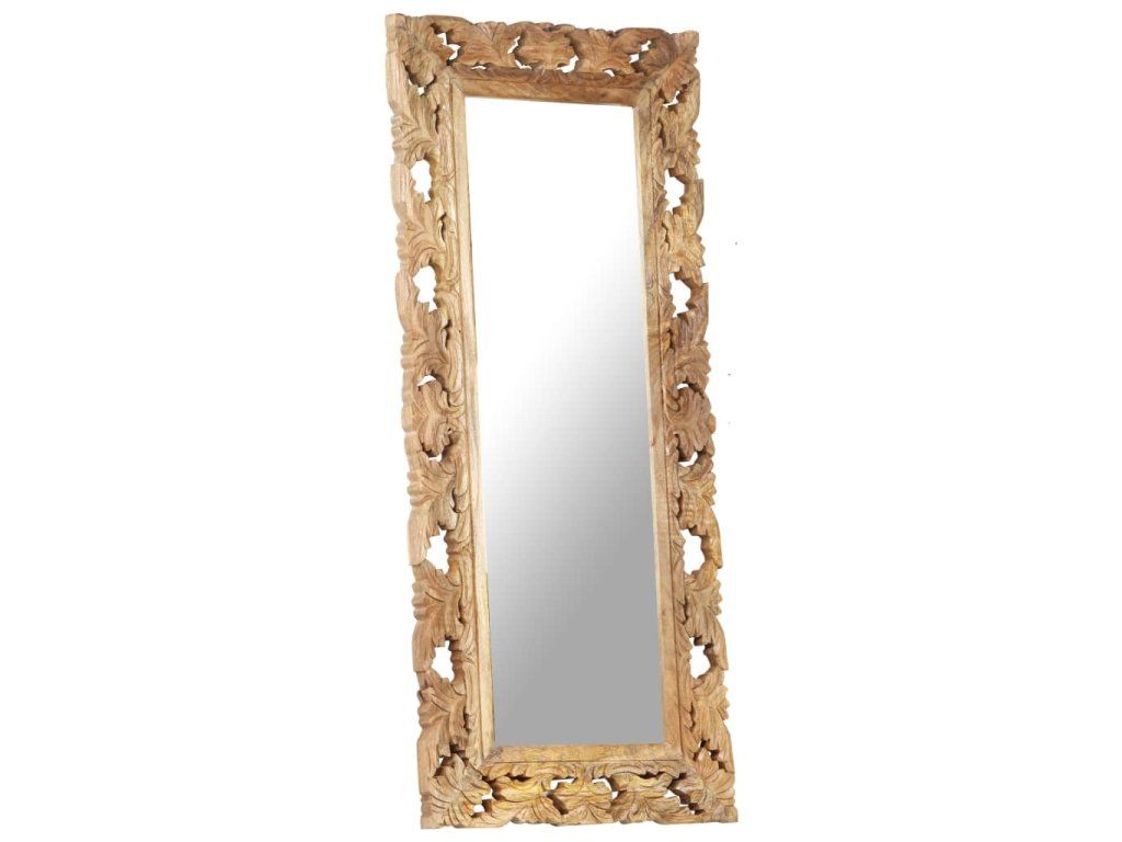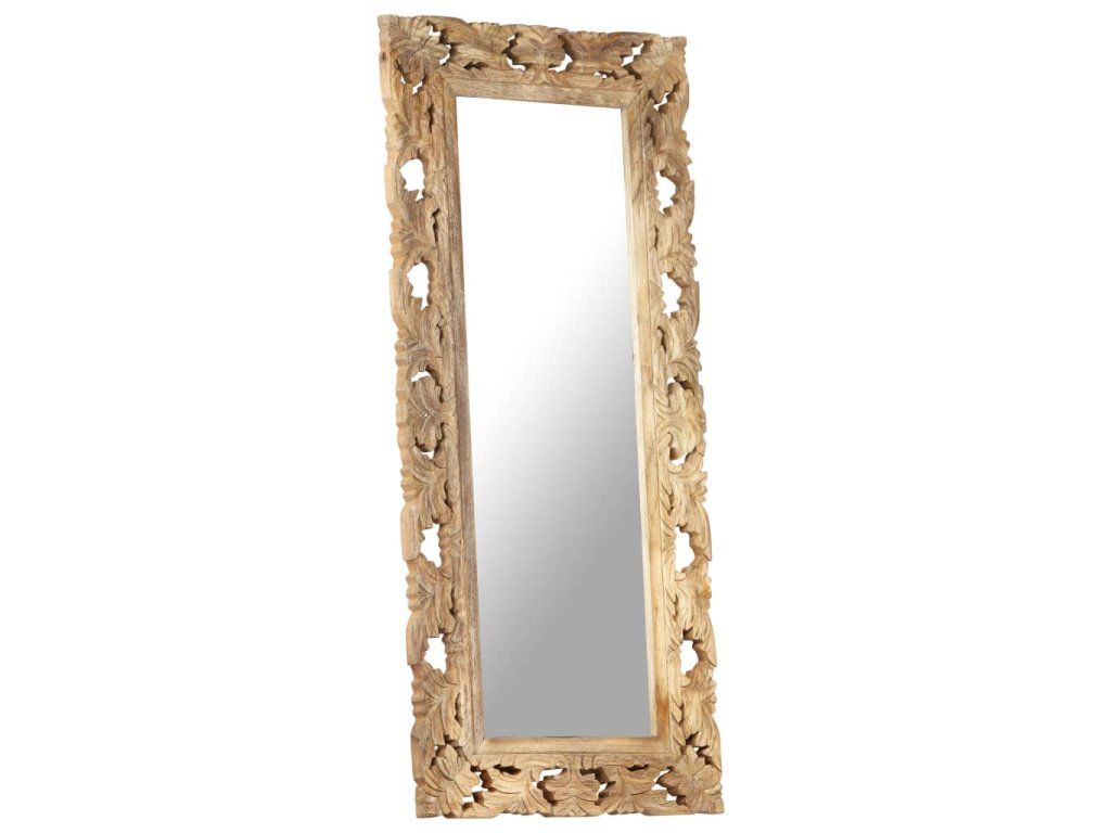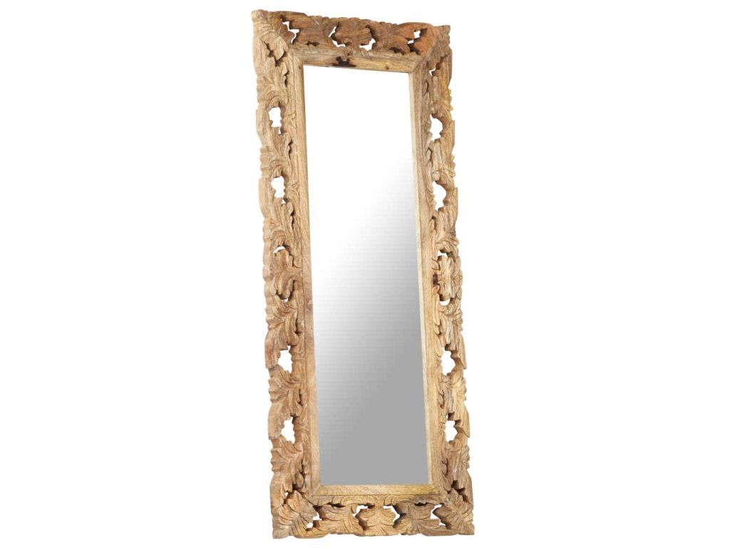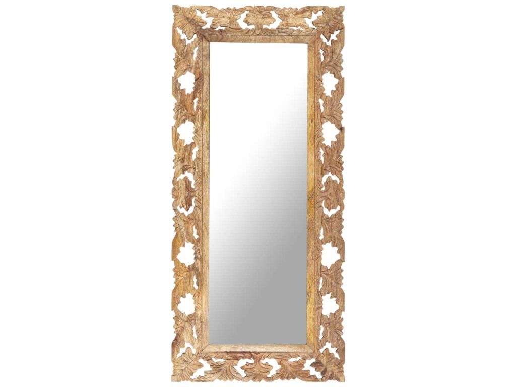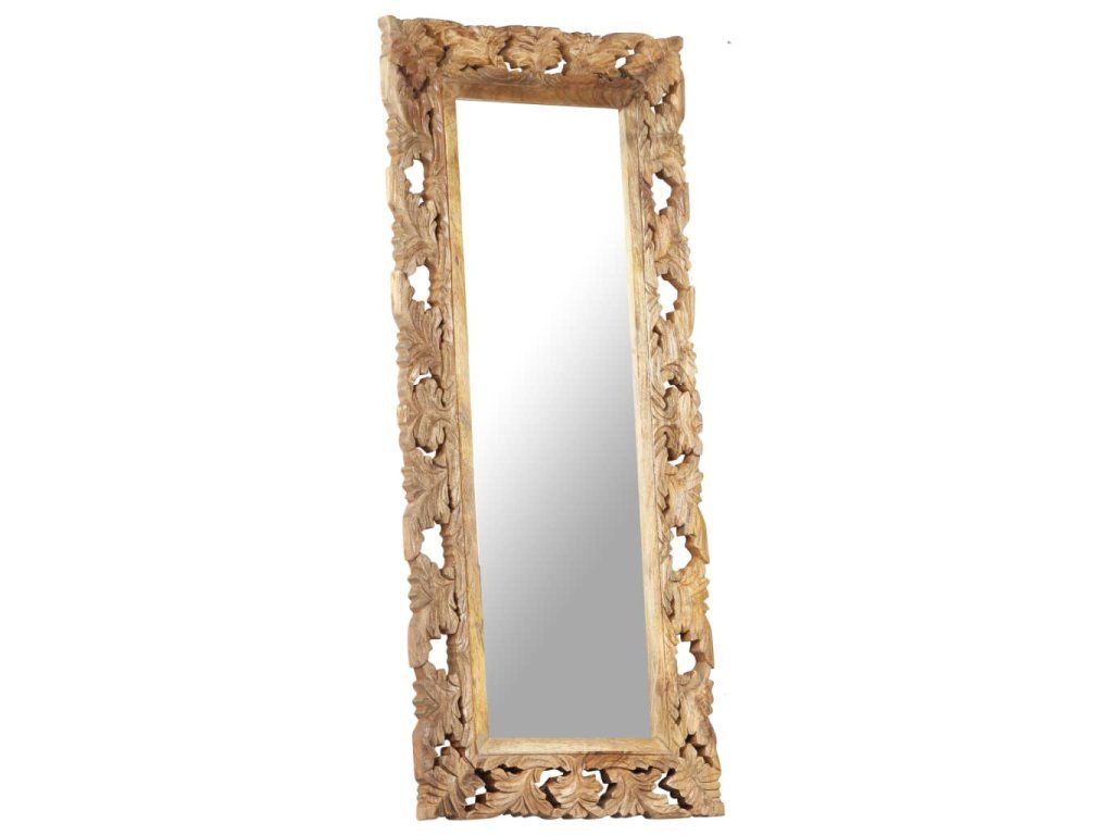 Masivní mangovník je tropické tvrdé dřevo, které jednak unese značnou váhu a zároveň výborně odolává působení času a neopotřebovává se. Precizní řemeslné zpracování a nádherná kresba dřeva dává každému kusu mírně odlišný charakter. Ručně vyřezávaný vzor zdůrazňuje krásu zrcadla.