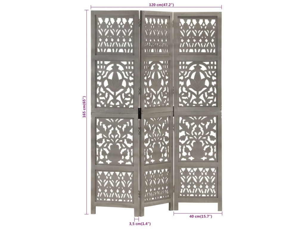 Paraván s pevnou konstrukcí má v sobě nádherné ručně vyřezávané ornamenty, které umocňují jeho moderní šarm. Když ho zrovna nepotřebujete, dá se složit, aby vám zbytečně nezabíral místo. Sestavení skládací zástěny je jednoduché.