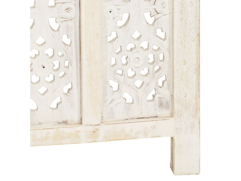Paraván s pevnou konstrukcí má v sobě ručně vyřezávané ornamenty, které umocňují jeho klasickou krásu. Když ho zrovna nepotřebujete, dá se složit, aby vám zbytečně nezabíral místo. Sestavení skládací zástěny je jednoduché.