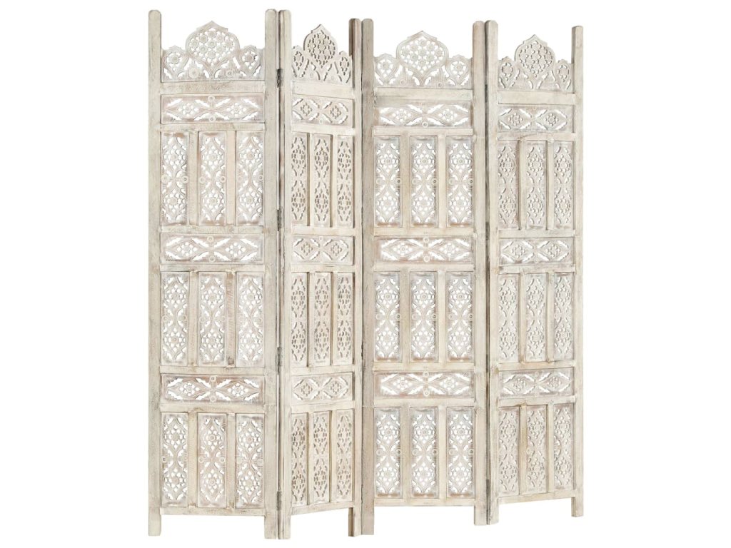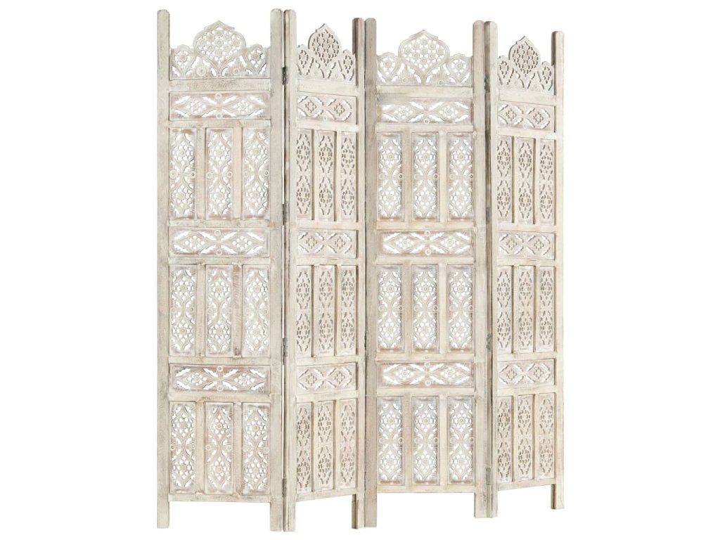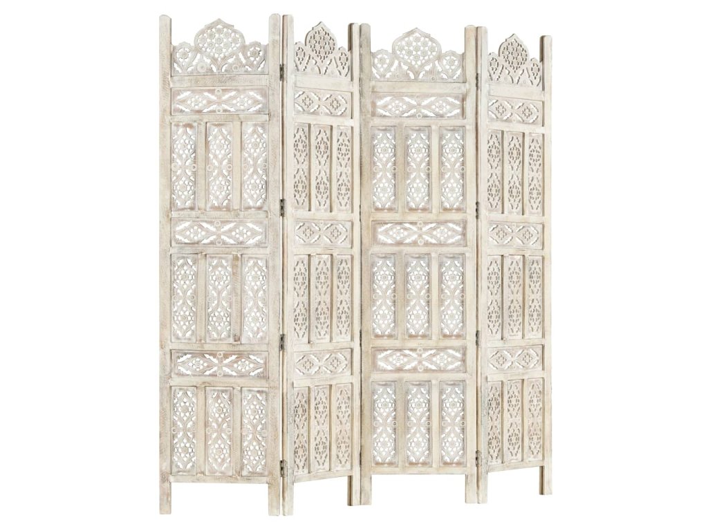 Paraván s pevnou konstrukcí má v sobě ručně vyřezávané ornamenty, které umocňují jeho klasickou krásu. Když ho zrovna nepotřebujete, dá se složit, aby vám zbytečně nezabíral místo. Sestavení skládací zástěny je jednoduché.