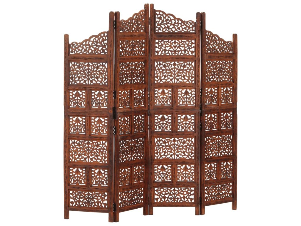 Paraván s pevnou konstrukcí má v sobě ručně vyřezávané ornamenty, které umocňují jeho mimořádný půvab. Když ho zrovna nepotřebujete, dá se složit, aby vám zbytečně nezabíral místo. Sestavení skládací zástěny je jednoduché.