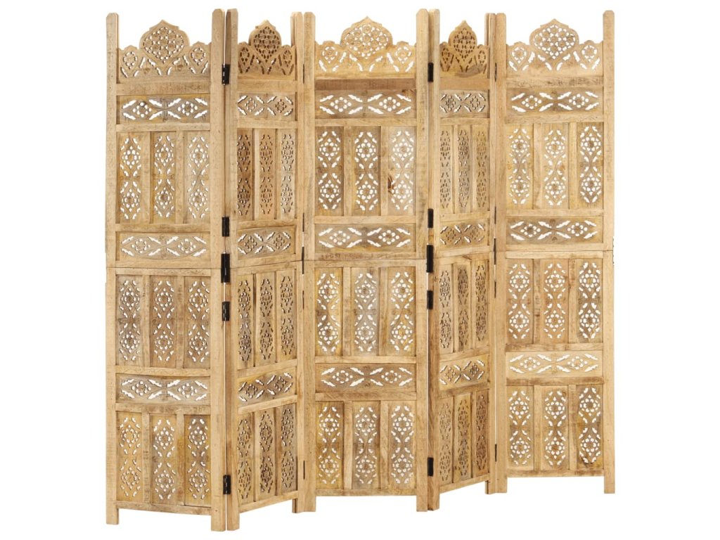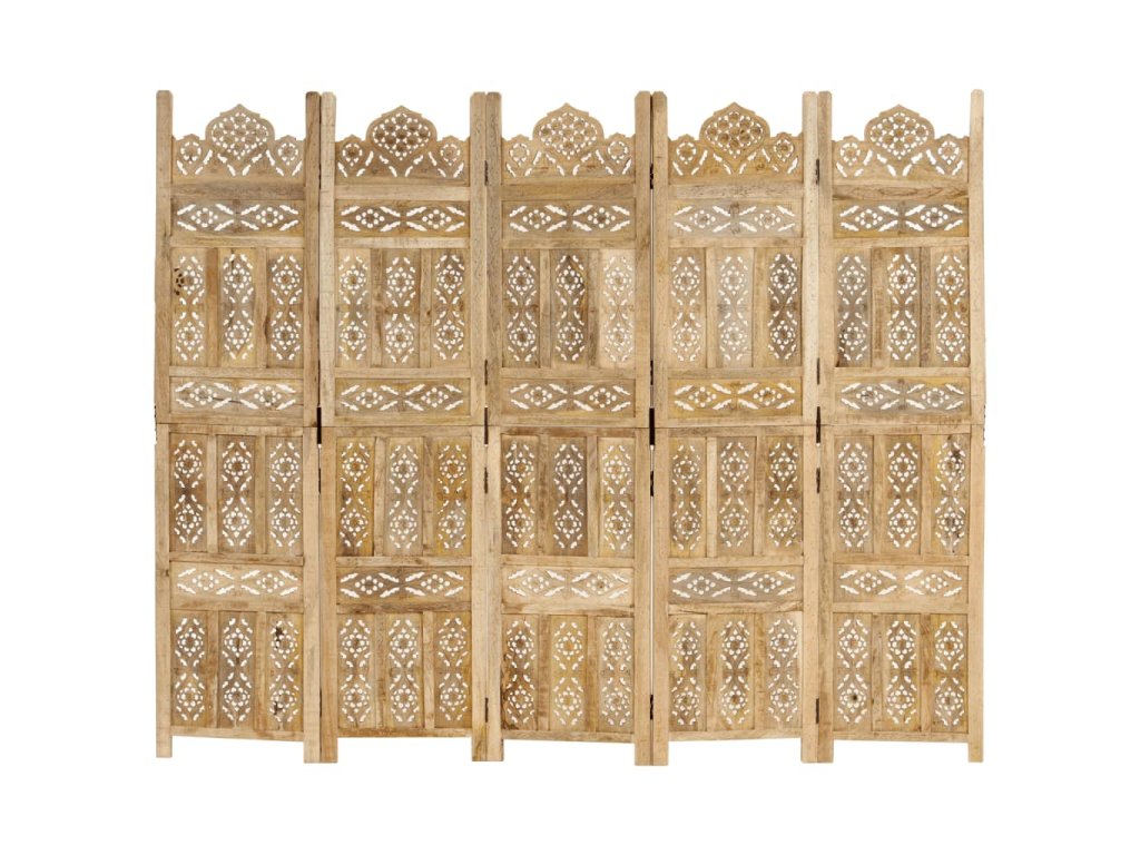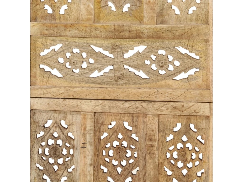 Paraván je zhotovený z masivního mangovníkového dřeva a má v sobě ručně vyřezávané ornamenty, které umocňují jeho klasickou krásu. Když ho zrovna nepotřebujete, dá se složit, aby vám zbytečně nezabíral místo. Sestavení skládací zástěny je jednoduché.