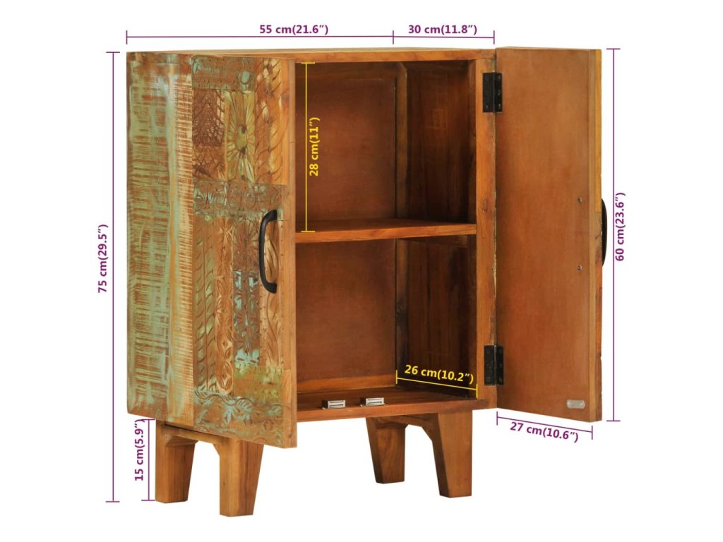 - Retro styl: Tato barevná boční skříňka se starožitným ručně vyřezávaným vzorem vnese do vašeho interiéru luxusní design inspirovaný polovinou minulého století a stane se ústředním bodem vašeho pokoje.