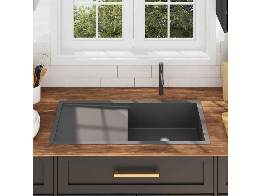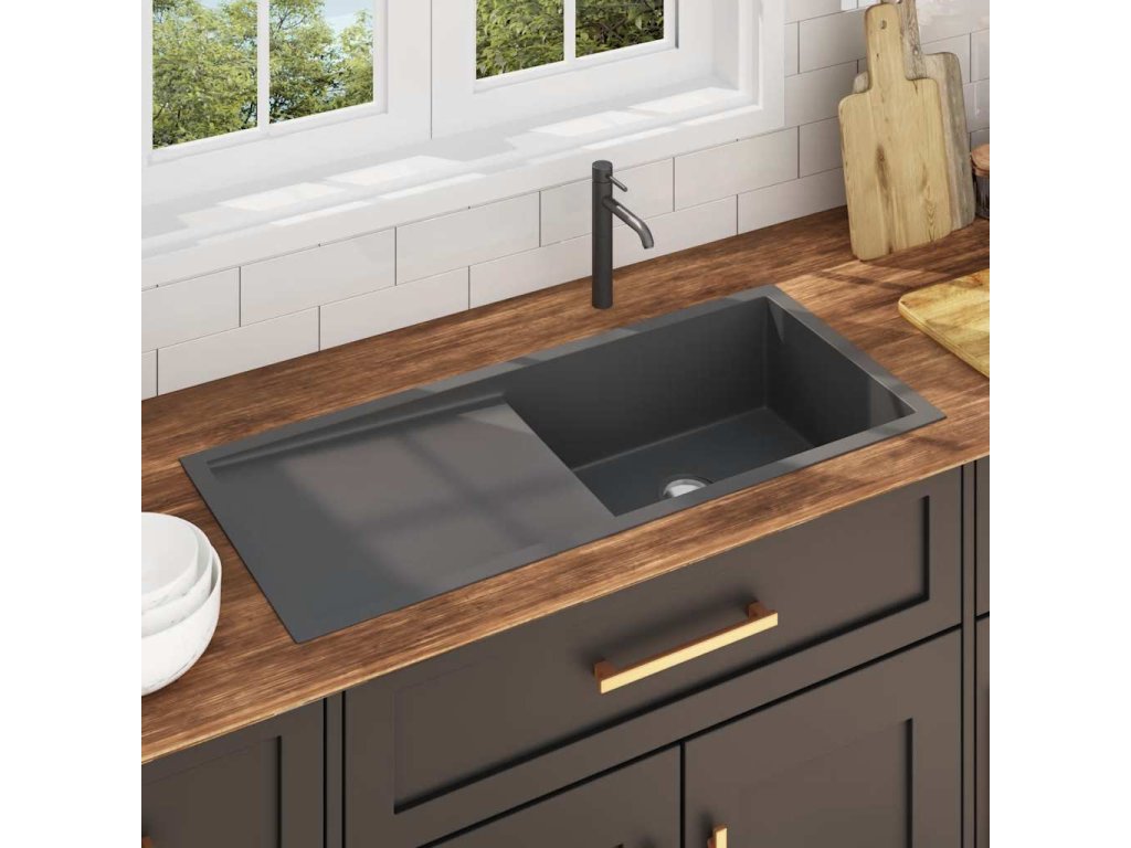 Dopřejte si luxusní kuchyňský dřez s čistým moderním designem. Umyvadlo a odkapávač mají sametově hladký saténový povrch a oplývají vkusem a elegancí, kterými zkrášlí jakoukoli kuchyni!