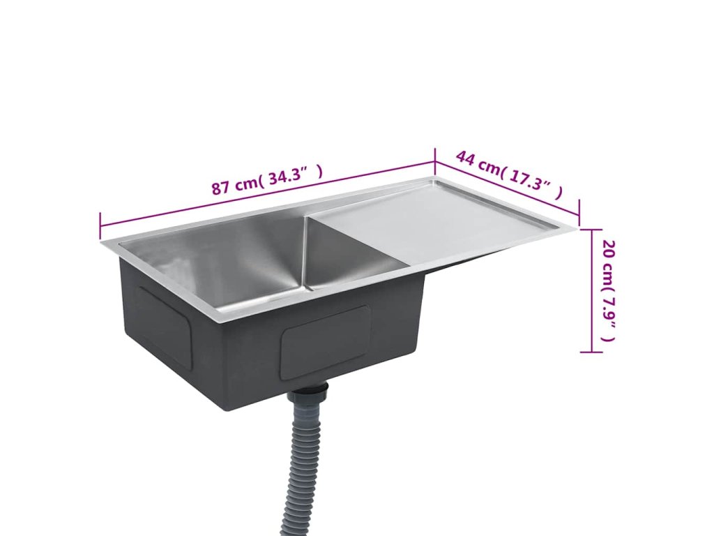 87 x 44 x 20 cm (jeden dřez + odkapávač)