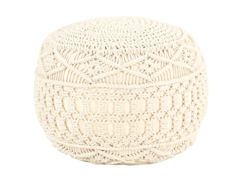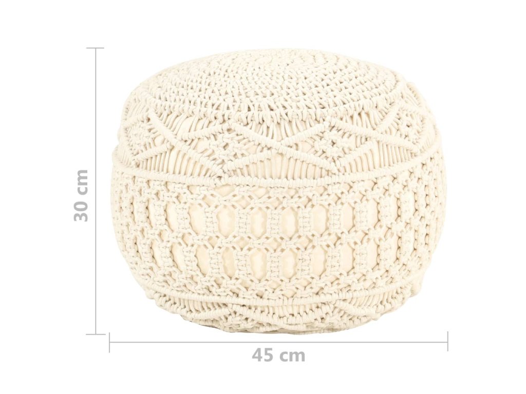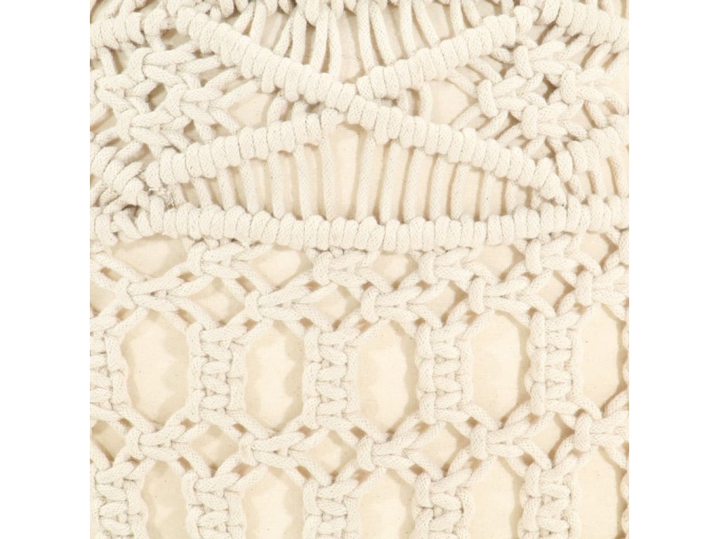 Uvelebte se na tomto moderním a stylovém pufu s macramé nebo si na něj hoďte nohy a odpočívejte! Je to nejen pohodlný, ale také dekorativní doplněk do vašeho bydlení.