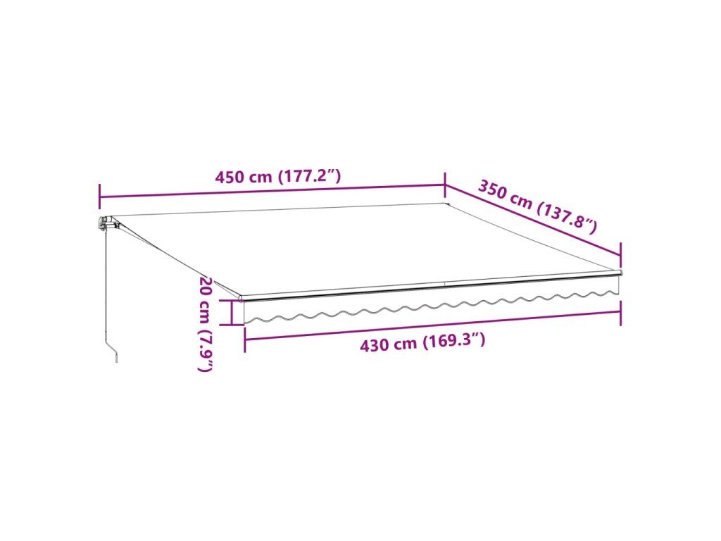 - Materiál s dlouhou životností: Rám markýzy je vyroben z práškově lakovaného hliníku, který je robustní a hodně toho vydrží. Tkanina s PU povrchovou úpravou je odolná proti UV záření. Ochrání vaši rodinu i hosty před UV zářením a oslňujícím slunečním světlem.