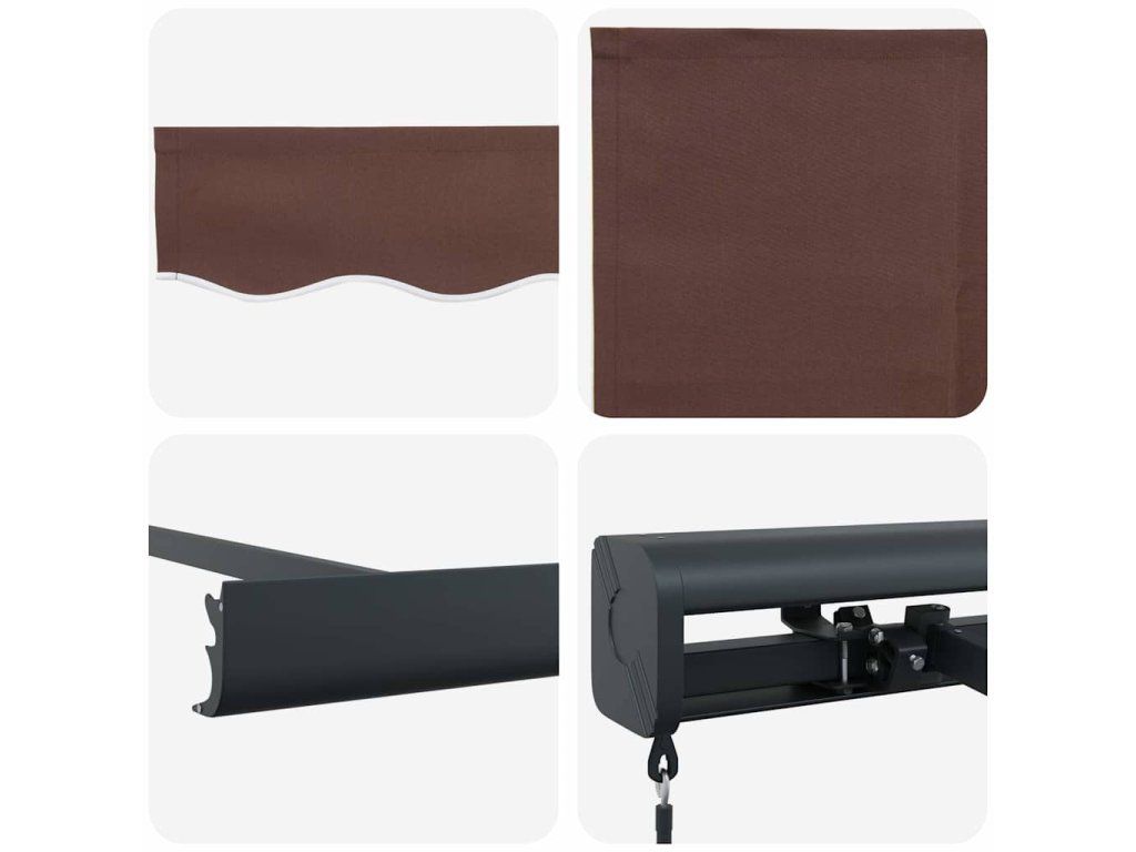 - Materiál s dlouhou životností: Rám markýzy je vyroben z práškově lakovaného hliníku, který je robustní a hodně toho vydrží. Tkanina s PU povrchovou úpravou je odolná proti UV záření. Ochrání vaši rodinu i hosty před UV zářením a oslňujícím slunečním světlem.