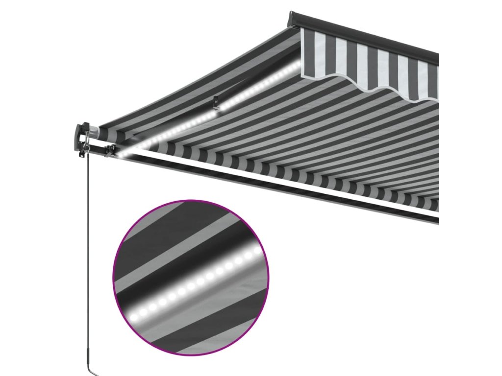 - LED světla: Integrovaná LED světla markýzy osvětlí váš venkovní obytný prostor a vytvoří útulnou a romantickou atmosféru po západu slunce.