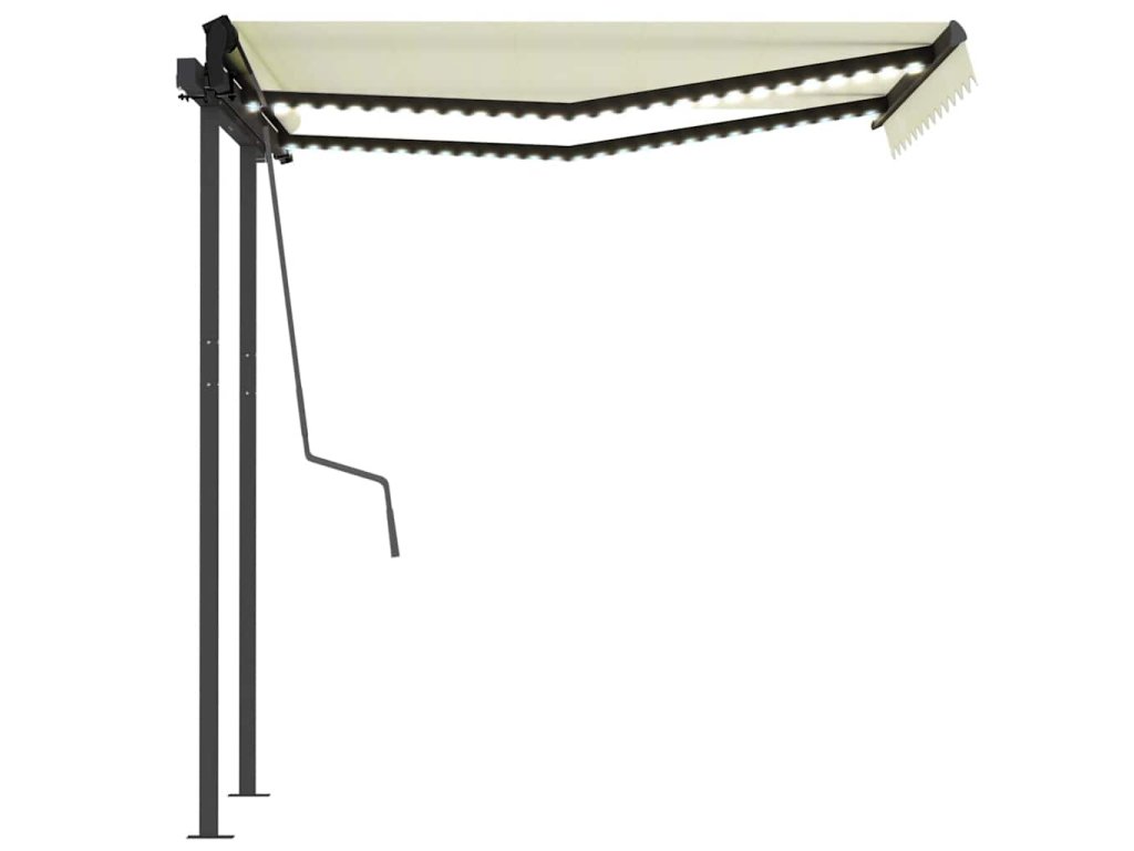 Tato markýza má hliníkový rám s práškovým nástřikem, který nerezaví, je lehký, ale přitom je mimořádně robustní. Pevný železný sloupek jí dodává na stabilitě. Zatahovací stříška je zhotovená z vysokohustotního polyesteru potaženého vrstvou PU, výborně tedy vzdoruje vodě i UV záření. Úhel a výšku si můžete navíc nastavit dle svých konkrétních potřeb. Markýzu snadno roztáhnete a zatáhnete pomocí dlouhé ruční kliky. A co víc, solární LED světla poskytují energeticky úsporné osvětlení v noci.