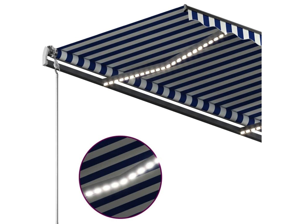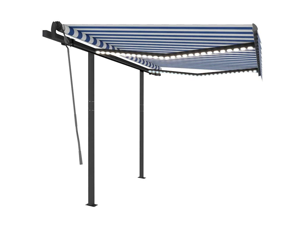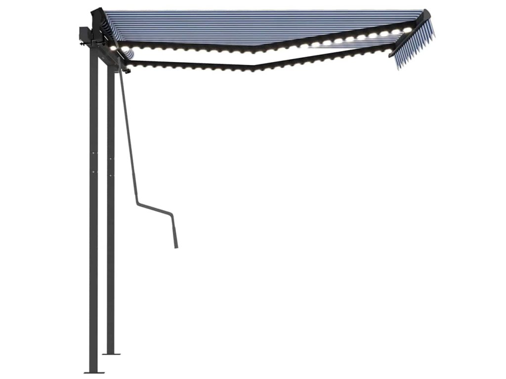 Tato markýza má hliníkový rám s práškovým nástřikem, který nerezaví, je lehký, ale přitom je mimořádně robustní. Pevný železný sloupek jí dodává na stabilitě. Zatahovací stříška je zhotovená z vysokohustotního polyesteru potaženého vrstvou PU, výborně tedy vzdoruje vodě i UV záření. Úhel a výšku si můžete navíc nastavit dle svých konkrétních potřeb. Markýzu snadno roztáhnete a zatáhnete pomocí dlouhé ruční kliky. A co víc, solární LED světla poskytují energeticky úsporné osvětlení v noci.