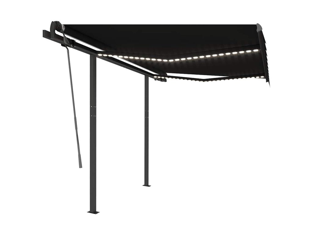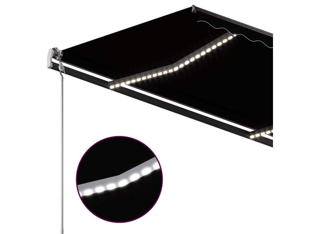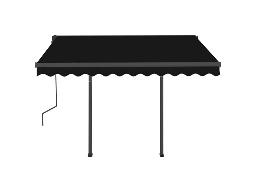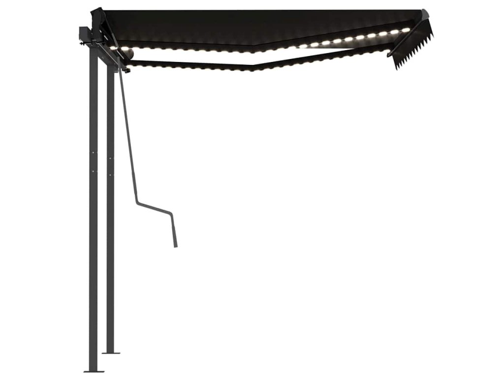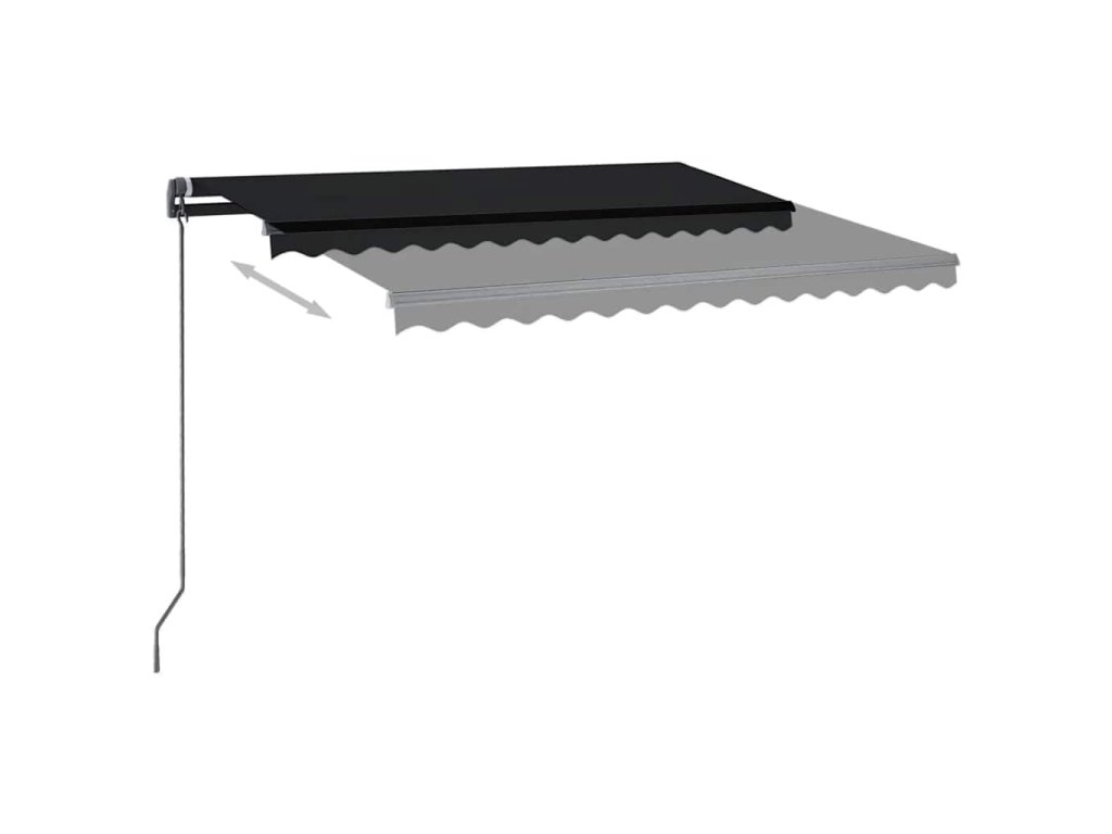 Tato markýza má hliníkový rám s práškovým nástřikem, který nerezaví, je lehký, ale přitom je mimořádně robustní. Pevný železný sloupek jí dodává na stabilitě. Zatahovací stříška je zhotovená z vysokohustotního polyesteru potaženého vrstvou PU, výborně tedy vzdoruje vodě i UV záření. Úhel a výšku si můžete navíc nastavit dle svých konkrétních potřeb. Markýzu snadno roztáhnete a zatáhnete pomocí dlouhé ruční kliky. A co víc, solární LED světla poskytují energeticky úsporné osvětlení v noci.