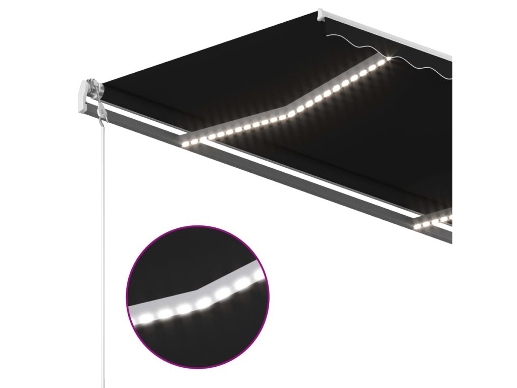 Zahradní markýza má práškově lakovaný hliníkový rám, který nerezaví, je lehký, a přitom tvoří velice pevnou konstrukci. Robustní železné sloupky jí přidávají na stabilitě. Zatahovací stříška je zhotovená z vysokohustotního polyesteru potaženého vrstvou PU, výborně tedy vzdoruje vodě i UV záření. Úhel a výšku si můžete navíc nastavit dle svých konkrétních potřeb. Markýzu snadno roztáhnete a zatáhnete pomocí dlouhé ruční kliky. A co víc, solární LED světla poskytují energeticky úsporné osvětlení v noci.