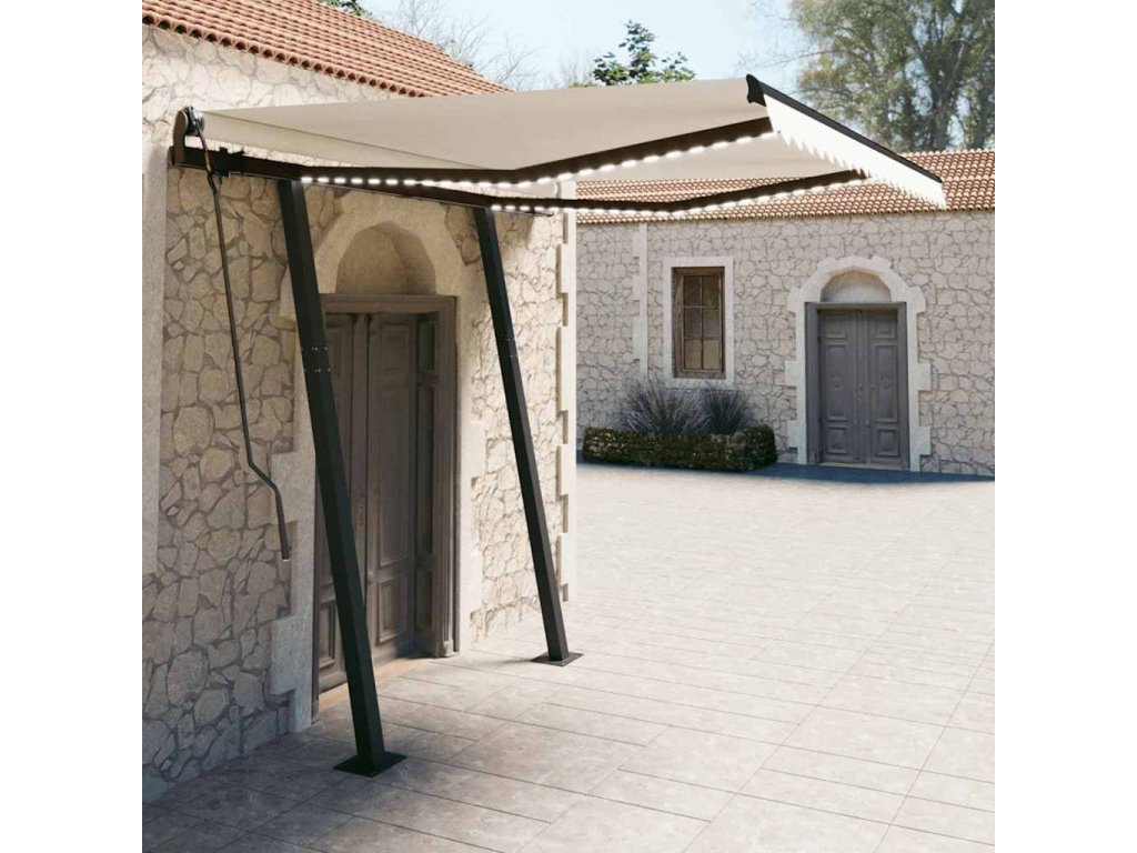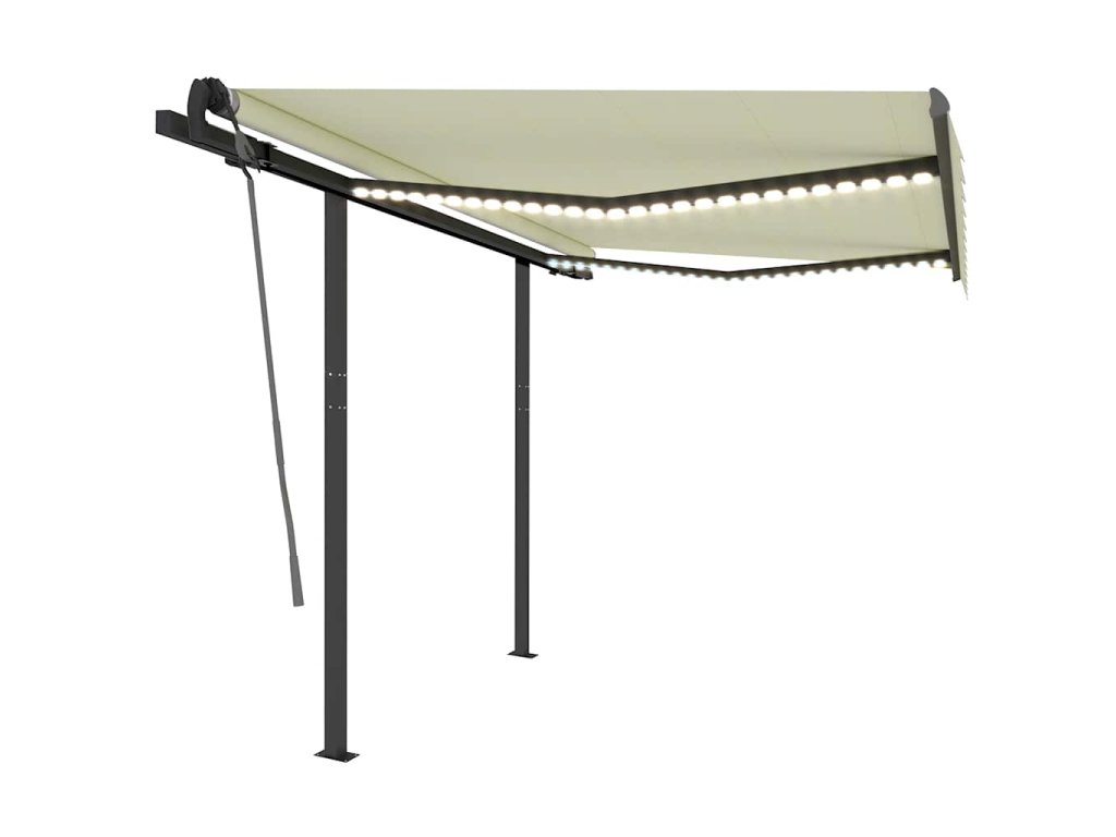 Tato markýza má hliníkový rám s práškovým nástřikem, který nerezaví, je lehký, ale přitom je mimořádně robustní. Pevný železný sloupek jí dodává na stabilitě. Zatahovací stříška je zhotovená z vysokohustotního polyesteru potaženého vrstvou PU, výborně tedy vzdoruje vodě i UV záření. Úhel a výšku si můžete navíc nastavit dle svých konkrétních potřeb. Markýzu snadno roztáhnete a zatáhnete pomocí dlouhé ruční kliky. A co víc, solární LED světla poskytují energeticky úsporné osvětlení v noci.