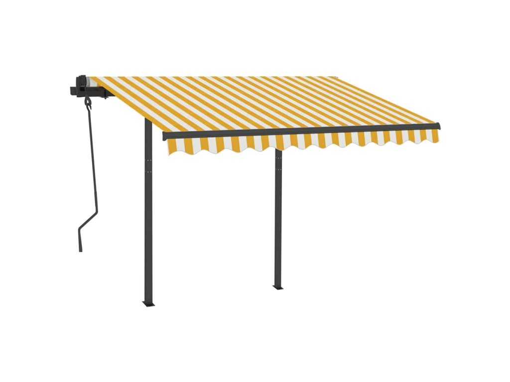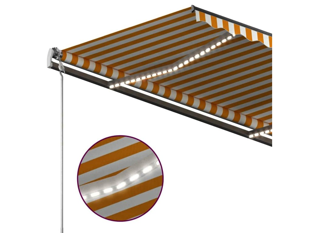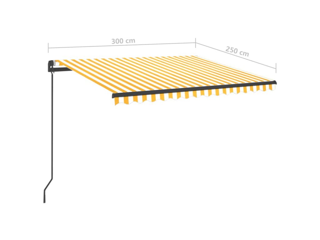 Tato markýza má hliníkový rám s práškovým nástřikem, který nerezaví, je lehký, ale přitom je mimořádně robustní. Pevný železný sloupek jí dodává na stabilitě. Zatahovací stříška je zhotovená z vysokohustotního polyesteru potaženého vrstvou PU, výborně tedy vzdoruje vodě i UV záření. Úhel a výšku si můžete navíc nastavit dle svých konkrétních potřeb. Markýzu snadno roztáhnete a zatáhnete pomocí dlouhé ruční kliky. A co víc, solární LED světla poskytují energeticky úsporné osvětlení v noci.