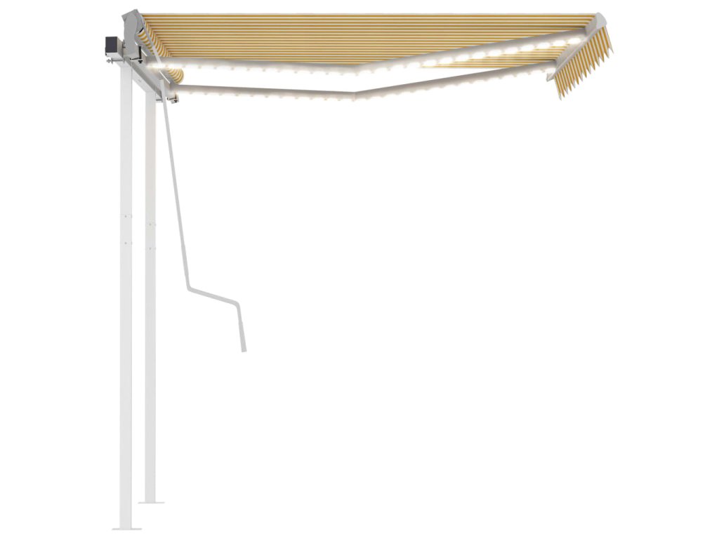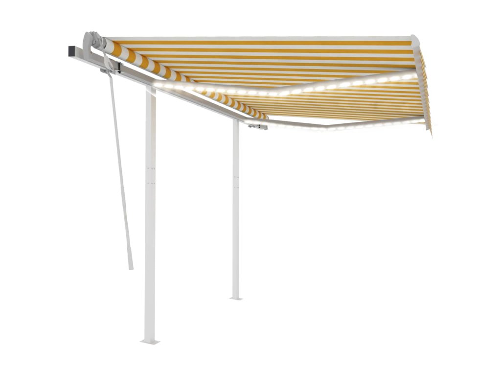 Zahradní markýza má práškově lakovaný hliníkový rám, který nerezaví, je lehký, a přitom tvoří velice pevnou konstrukci. Robustní železné sloupky jí přidávají na stabilitě. Zatahovací stříška je zhotovená z vysokohustotního polyesteru potaženého vrstvou PU, výborně tedy vzdoruje vodě i UV záření. Úhel a výšku si můžete navíc nastavit dle svých konkrétních potřeb. Markýzu snadno roztáhnete a zatáhnete pomocí dlouhé ruční kliky. A co víc, solární LED světla poskytují energeticky úsporné osvětlení v noci.