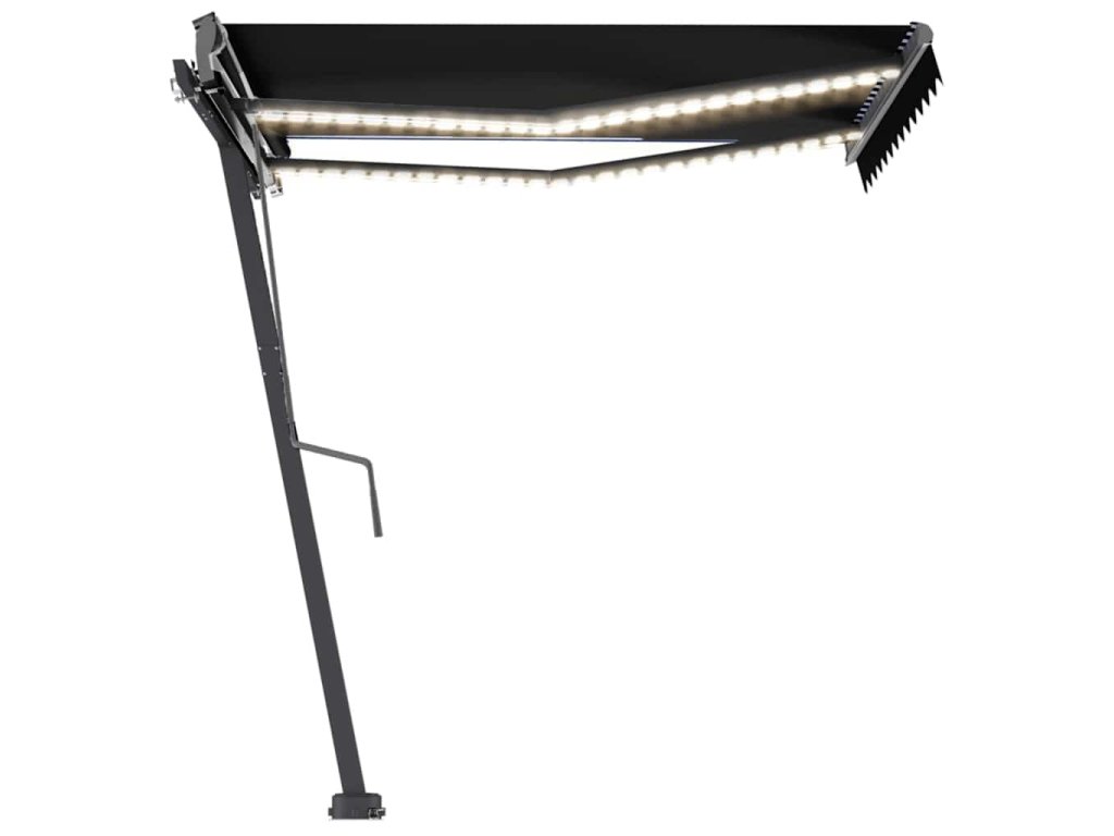 Tato markýza má hliníkový rám s práškovým nástřikem, který nerezaví, je lehký, ale přitom je mimořádně robustní. Zatahovací stříška je zhotovená z vysokohustotního polyesteru potaženého vrstvou PU, výborně tedy vzdoruje vodě i UV záření. Úhel a výšku si můžete navíc nastavit dle svých konkrétních potřeb. Volně stojící markýzu snadno roztáhnete a zatáhnete pomocí dlouhé ruční kliky. A co víc, solární LED světla poskytují energeticky úsporné osvětlení v noci. Robustní základnu lze otáčet o 360 stupňů, čímž se maximálně přizpůsobí vašim potřebám.