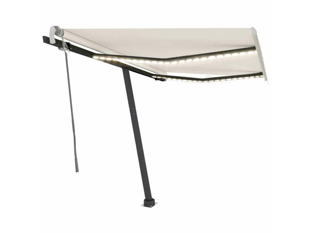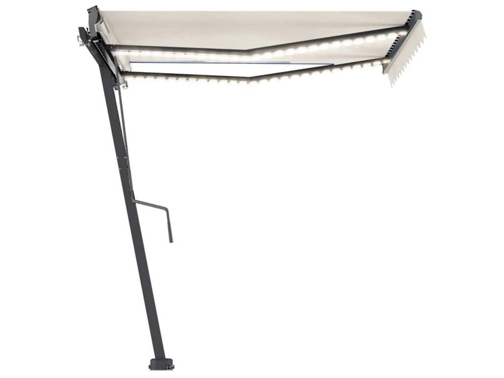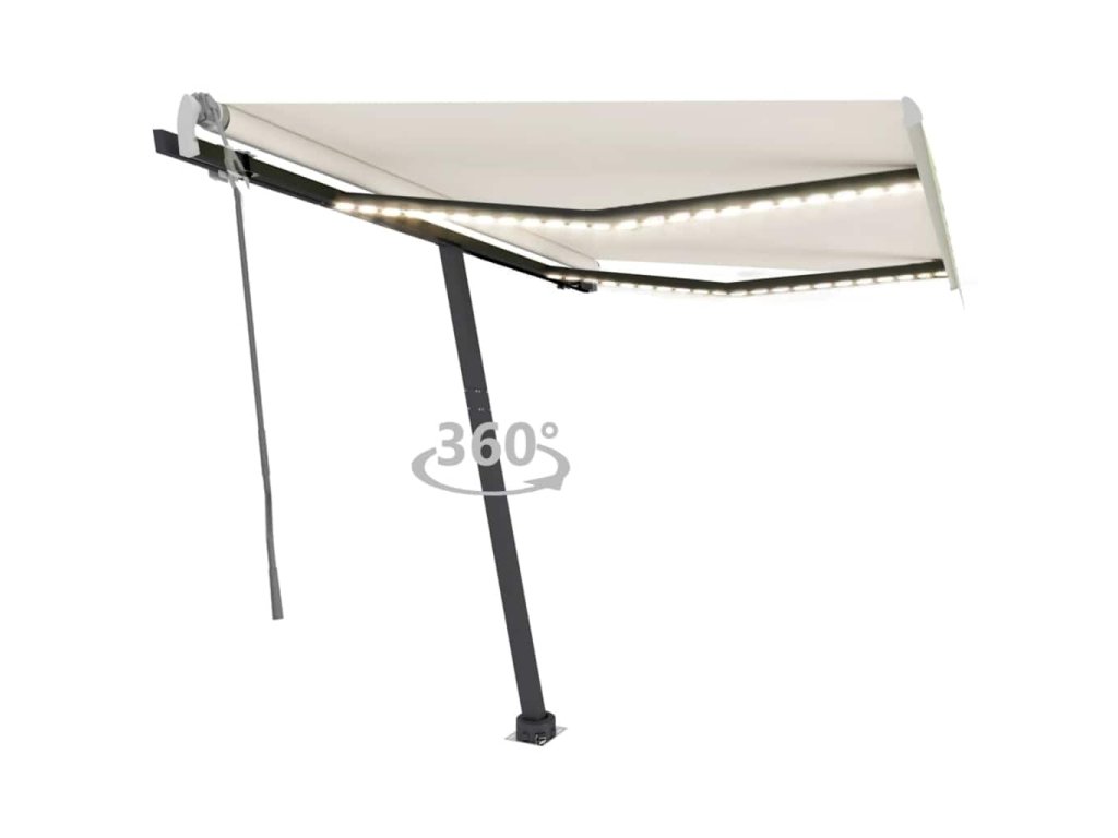 Tato markýza má hliníkový rám s práškovým nástřikem, který nerezaví, je lehký, ale přitom je mimořádně robustní. Zatahovací stříška je zhotovená z vysokohustotního polyesteru potaženého vrstvou PU, výborně tedy vzdoruje vodě i UV záření. Úhel a výšku si můžete navíc nastavit dle svých konkrétních potřeb. Volně stojící markýzu snadno roztáhnete a zatáhnete pomocí dlouhé ruční kliky. A co víc, solární LED světla poskytují energeticky úsporné osvětlení v noci. Robustní základnu lze otáčet o 360 stupňů, čímž se maximálně přizpůsobí vašim potřebám.