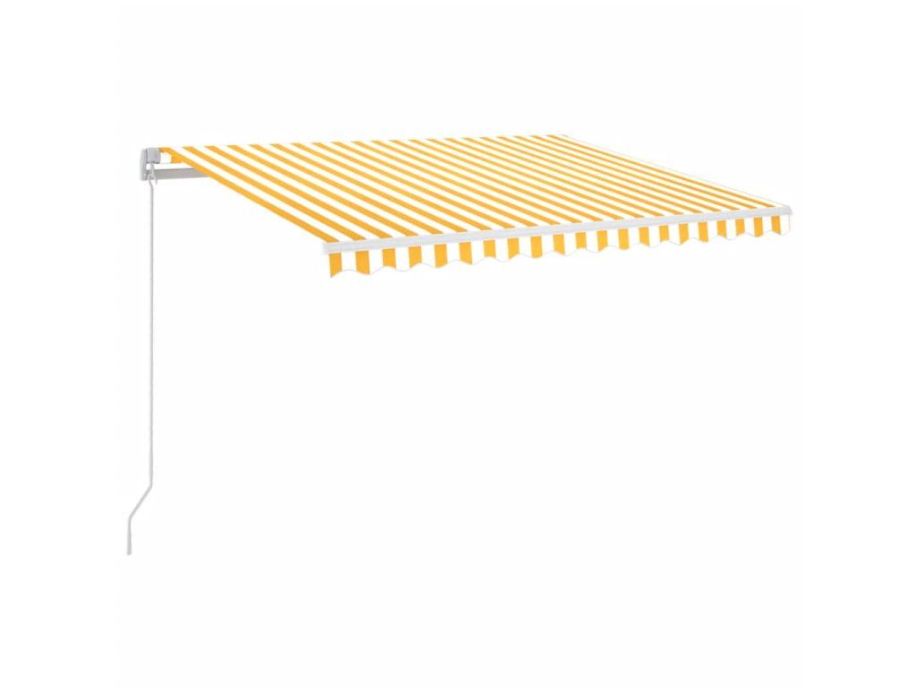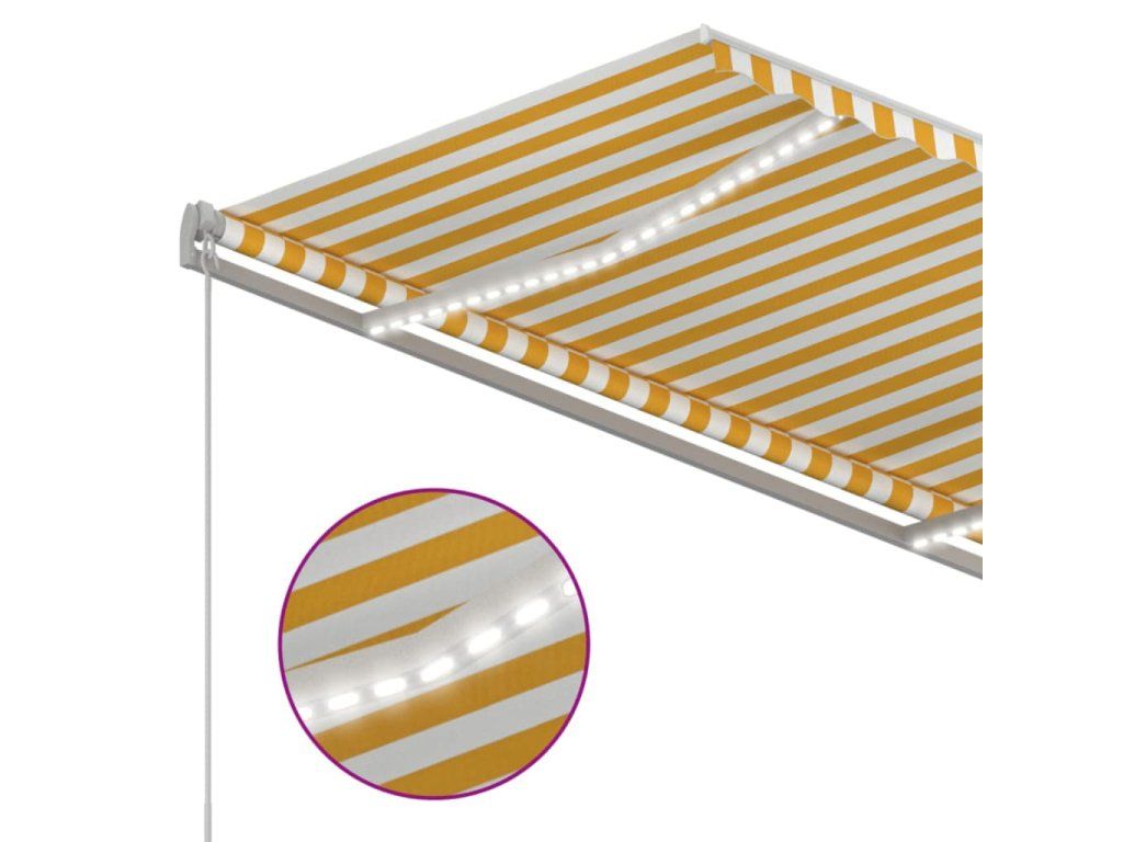 Tato markýza má hliníkový rám s práškovým nástřikem, který nerezaví, je lehký, ale přitom je mimořádně robustní. Zatahovací stříška je zhotovená z vysokohustotního polyesteru potaženého vrstvou PU, výborně tedy vzdoruje vodě i UV záření. Úhel a výšku si můžete navíc nastavit dle svých konkrétních potřeb. Markýzu snadno roztáhnete a zatáhnete pomocí dlouhé ruční kliky. A co víc, solární LED světla poskytují energeticky úsporné osvětlení v noci.