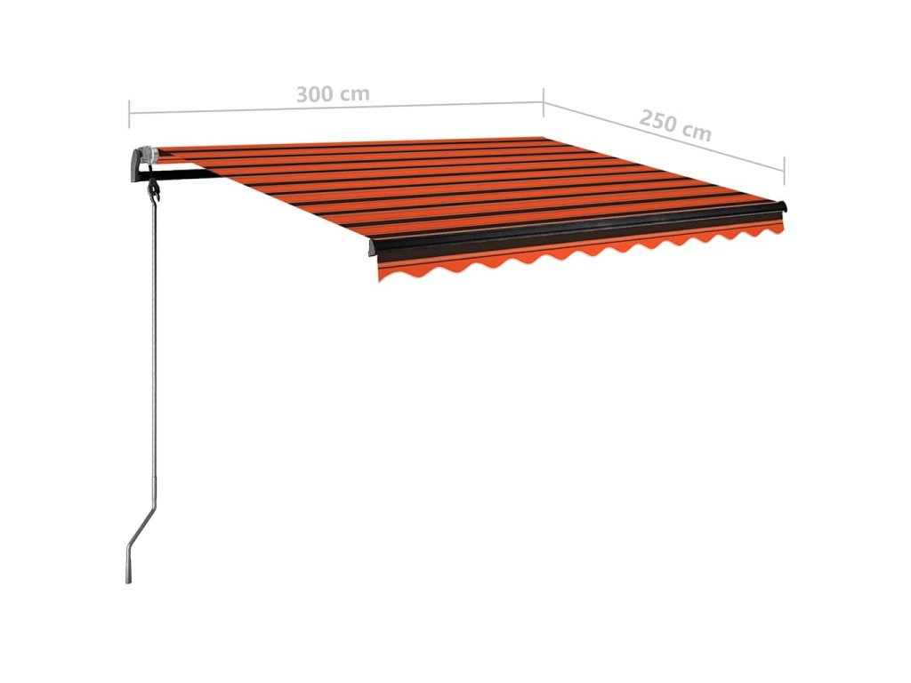 Před montáží a použitím výrobku je třeba si přečíst návod k obsluze. Tento návod si uschovejte pro budoucí použití. Tento výrobek je určen pouze pro venkovní a domácí použití jako ochrana před sluncem nebo dekorace. Nikdy jej nepoužívejte k jiným účelům ani výrobek neupravujte. Nepoužívejte jej na místech, kde dochází k vibracím, impulzům neob vysokým teplotám, například na stěnách v blízkosti pecí. Při montáži a nastavování markýzy vždy používejte vhodné osobní ochranné pomůcky. Při práci ve velkých výškách hrozí nebezpečí pádu, používejte vhodnou ochranu proti pádu. Při montáži buďte opatrní, může hrozit nebezpečí rozdrcení nebo useknutí. NEODSTRAŇUJTE bezpečnostní fólie. Tyto fólie lze odstranit až po dokončení všech montážních kroků, po upevnění všech šroubů a po připevnění výrobku ke stěně. Při předčasném odstranění fólie může dojít k vážnému zranění. Tento výrobek a jeho upevňovací díly jsou vhodné pouze pro instalaci na hladkou cementovou zeď nebo stabilní neomítnuté zdivo. Pokud stěna/zdivo vykazuje trhliny, je třeba se poradit s odborníkem. Pokud má vaše budova vnější plášť (např. izolaci, dvojitou cihlovou stěnu nebo cihlový obklad), měl by instalaci provést odborník. Nikdy neinstalujte na vysokých a větrných místech, protože by sluneční clona mohla spadnout a zranit osoby. Markýzu neinstalujte, pokud zjistíte, že jsou některé díly poškozené nebo zcela chybí. Vnější žaluzie se musí stáhnout v případě, že je rychlost větru vyšší než 28 km/h. Před otevřením markýzy se ujistěte, že jsou všechny držáky bezpečně připevněny ke stěnovým hmoždinkám a všechny šrouby jsou řádně dotaženy. VŽDY markýzu zavírejte při silném nebo prudkém větru, dešti a v době, kdy ji nepoužíváte. V opačném případě může dojít ke zranění osob a/nebo poškození majetku. Také výsuvná ramena jsou pod vysokým napětím a mohou způsobit vážné poškození nebo zranění. Děti by měly být pod dohledem, aby se zajistilo, že si se zařízením nebudou hrát. Nepoužívejte jej, pokud je nutná oprava nebo seřízení. Nepoužívejte markýzu, pokud se v její blízkosti provádí údržba, například mytí oken. Provoz v mrazivých podmínkách může markýzu poškodit. Nepokládejte na rám těžké věci, protože by mohly spadnout a způsobit poškození. Příliš pevné a příliš volné upevňovací prvky by mohly způsobit poškození výrobku nebo být nebezpečné pro osoby. Upozornění: Tkanina by se během provozu neměla prověšovat, jinak se na ní bude hromadit voda. Tkaninu nerozbalujte a neperte. Pokud potřebujete látku vyměnit, obraťte se s žádostí o pomoc na odborníky. Při ovládání ručního spouštění se zataženou vnější roletou buďte opatrní, protože může dojít k jejímu rychlému pádu v důsledku slabých nebo poškozených pružin. Nebezpečí! Silná pružina. NEODSTRAŇUJTE toto lano, dokud nedokončíte všechny kroky montáže, všechny šrouby nejsou utažené a předmět není připevněn ke zdi! Varování! Při povolování ramen dbejte opatrnosti, neboť jsou pod mechanickým tlakem! Náhlé uvolnění skládacího ramene může způsobit zranění. Varování: Před použitím výrobku si pečlivě přečtěte návod k obsluze. Varování: Používání při teplotách pod bodem mrazu může produkt poškodit. Externí použití v budovách a jiných stavbách.