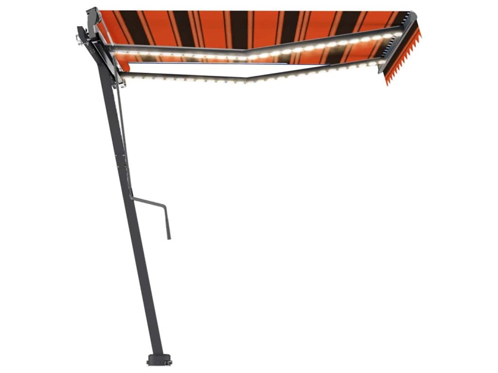 Tato markýza má hliníkový rám s práškovým nástřikem, který nerezaví, je lehký, ale přitom je mimořádně robustní. Zatahovací stříška je zhotovená z vysokohustotního polyesteru potaženého vrstvou PU, výborně tedy vzdoruje vodě i UV záření. Úhel a výšku si můžete navíc nastavit dle svých konkrétních potřeb. Volně stojící markýzu snadno roztáhnete a zatáhnete pomocí dlouhé ruční kliky. A co víc, solární LED světla poskytují energeticky úsporné osvětlení v noci. Robustní základnu lze otáčet o 360 stupňů, čímž se maximálně přizpůsobí vašim potřebám.