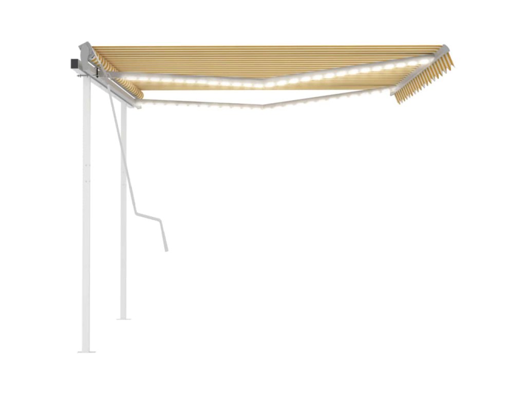 Zahradní markýza má práškově lakovaný hliníkový rám, který nerezaví, je lehký, a přitom tvoří velice pevnou konstrukci. Robustní železné sloupky jí přidávají na stabilitě. Zatahovací stříška je zhotovená z vysokohustotního polyesteru potaženého vrstvou PU, výborně tedy vzdoruje vodě i UV záření. Úhel a výšku si můžete navíc nastavit dle svých konkrétních potřeb. Markýzu snadno roztáhnete a zatáhnete pomocí dlouhé ruční kliky. A co víc, solární LED světla poskytují energeticky úsporné osvětlení v noci.