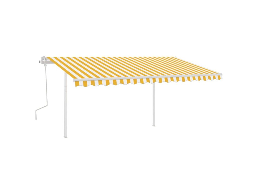 Zahradní markýza má práškově lakovaný hliníkový rám, který nerezaví, je lehký, a přitom tvoří velice pevnou konstrukci. Robustní železné sloupky jí přidávají na stabilitě. Zatahovací stříška je zhotovená z vysokohustotního polyesteru potaženého vrstvou PU, výborně tedy vzdoruje vodě i UV záření. Úhel a výšku si můžete navíc nastavit dle svých konkrétních potřeb. Markýzu snadno roztáhnete a zatáhnete pomocí dlouhé ruční kliky. A co víc, solární LED světla poskytují energeticky úsporné osvětlení v noci.