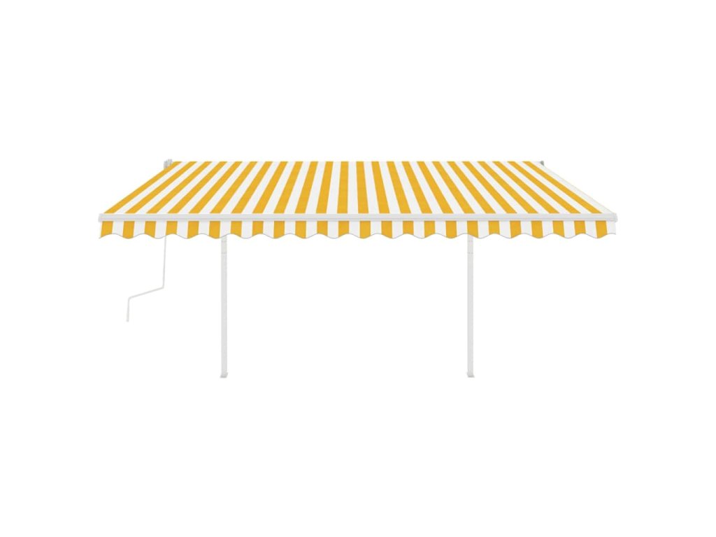 Zahradní markýza má práškově lakovaný hliníkový rám, který nerezaví, je lehký, a přitom tvoří velice pevnou konstrukci. Robustní železné sloupky jí přidávají na stabilitě. Zatahovací stříška je zhotovená z vysokohustotního polyesteru potaženého vrstvou PU, výborně tedy vzdoruje vodě i UV záření. Úhel a výšku si můžete navíc nastavit dle svých konkrétních potřeb. Markýzu snadno roztáhnete a zatáhnete pomocí dlouhé ruční kliky. A co víc, solární LED světla poskytují energeticky úsporné osvětlení v noci.