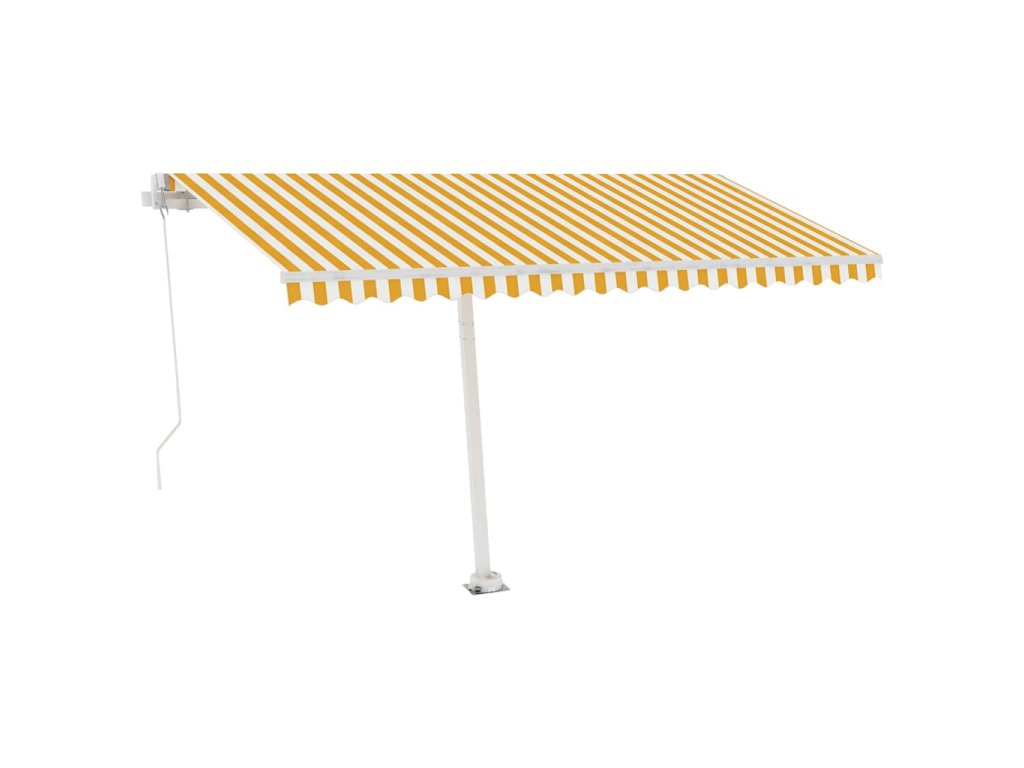 Tato markýza má hliníkový rám s práškovým nástřikem, který nerezaví, je lehký, ale přitom je mimořádně robustní. Zatahovací stříška je zhotovená z vysokohustotního polyesteru potaženého vrstvou PU, výborně tedy vzdoruje vodě i UV záření. Úhel a výšku si můžete navíc nastavit dle svých konkrétních potřeb. Volně stojící markýzu snadno roztáhnete a zatáhnete pomocí dlouhé ruční kliky. A co víc, solární LED světla poskytují energeticky úsporné osvětlení v noci. Robustní základnu lze otáčet o 360 stupňů, čímž se maximálně přizpůsobí vašim potřebám.
