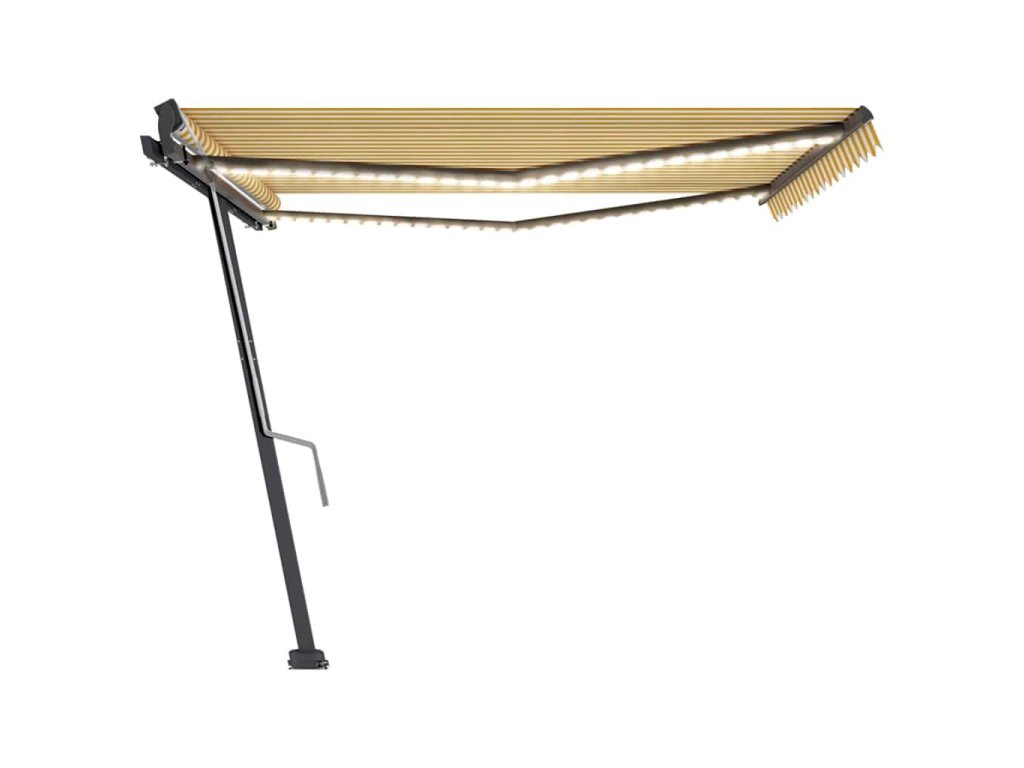 Tato markýza má hliníkový rám s práškovým nástřikem, který nerezaví, je lehký, ale přitom je mimořádně robustní. Zatahovací stříška je zhotovená z vysokohustotního polyesteru potaženého vrstvou PU, výborně tedy vzdoruje vodě i UV záření. Úhel a výšku si můžete navíc nastavit dle svých konkrétních potřeb. Volně stojící markýzu snadno roztáhnete a zatáhnete pomocí dlouhé ruční kliky. A co víc, solární LED světla poskytují energeticky úsporné osvětlení v noci. Robustní základnu lze otáčet o 360 stupňů, čímž se maximálně přizpůsobí vašim potřebám.