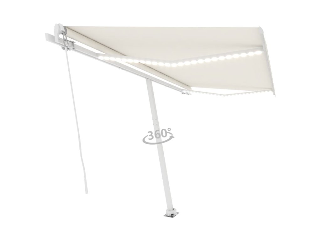 Tato markýza má hliníkový rám s práškovým nástřikem, který nerezaví, je lehký, ale přitom je mimořádně robustní. Zatahovací stříška je zhotovená z vysokohustotního polyesteru potaženého vrstvou PU, výborně tedy vzdoruje vodě i UV záření. Úhel a výšku si můžete navíc nastavit dle svých konkrétních potřeb. Volně stojící markýzu snadno roztáhnete a zatáhnete pomocí dlouhé ruční kliky. A co víc, solární LED světla poskytují energeticky úsporné osvětlení v noci. Robustní základnu lze otáčet o 360 stupňů, čímž se maximálně přizpůsobí vašim potřebám.