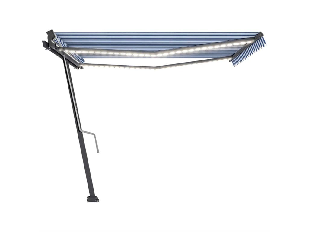 Tato markýza má hliníkový rám s práškovým nástřikem, který nerezaví, je lehký, ale přitom je mimořádně robustní. Zatahovací stříška je zhotovená z vysokohustotního polyesteru potaženého vrstvou PU, výborně tedy vzdoruje vodě i UV záření. Úhel a výšku si můžete navíc nastavit dle svých konkrétních potřeb. Volně stojící markýzu snadno roztáhnete a zatáhnete pomocí dlouhé ruční kliky. A co víc, solární LED světla poskytují energeticky úsporné osvětlení v noci. Robustní základnu lze otáčet o 360 stupňů, čímž se maximálně přizpůsobí vašim potřebám.