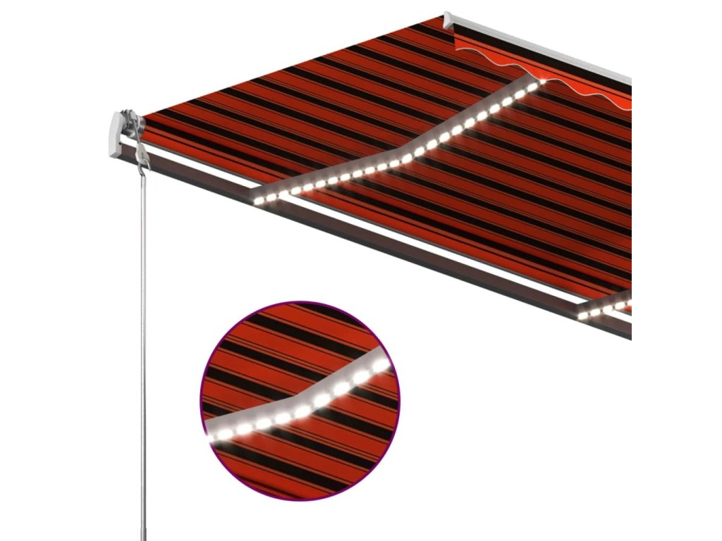 Tato markýza má hliníkový rám s práškovým nástřikem, který nerezaví, je lehký, ale přitom je mimořádně robustní. Zatahovací stříška je zhotovená z vysokohustotního polyesteru potaženého vrstvou PU, výborně tedy vzdoruje vodě i UV záření. Úhel a výšku si můžete navíc nastavit dle svých konkrétních potřeb. Volně stojící markýzu snadno roztáhnete a zatáhnete pomocí dlouhé ruční kliky. A co víc, solární LED světla poskytují energeticky úsporné osvětlení v noci. Robustní základnu lze otáčet o 360 stupňů, čímž se maximálně přizpůsobí vašim potřebám.