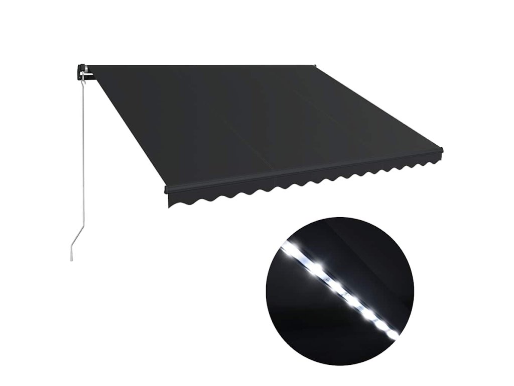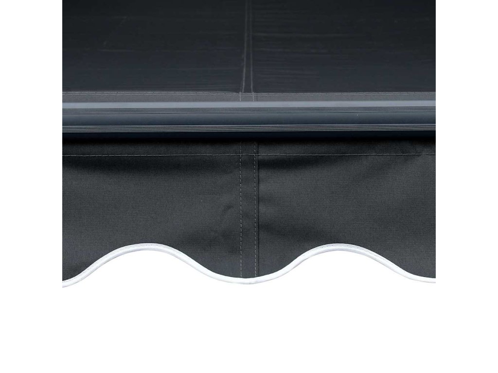 Zahradní markýza má hliníkový rám s práškovým nástřikem, který nerezaví, je lehký, ale přitom tvoří velice pevnou konstrukci. Do jisté míry dokáže odolávat i větru. Zatahovací stříška je zhotovená z vysokohustotního polyesteru potaženého vrstvou PU, výborně tedy vzdoruje vodě i UV záření a nebledne. Úhel a výšku si můžete nastavit dle svých konkrétních potřeb. Markýzu snadno roztáhnete a zatáhnete pomocí dlouhé ruční kliky. K ramenu jsou navíc připevněná solární energie napájená LED světla, která v noci vyzařují energeticky úsporné osvětlení.