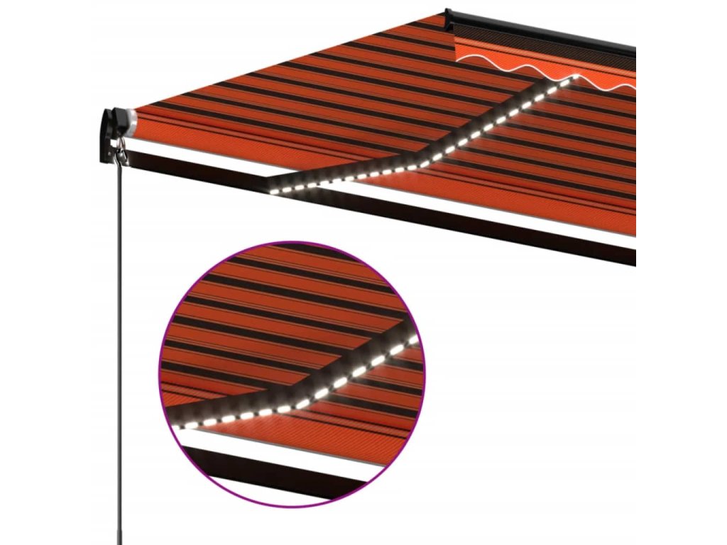 Tato markýza má hliníkový rám s práškovým nástřikem, který nerezaví, je lehký, ale přitom je mimořádně robustní. Zatahovací stříška je zhotovená z vysokohustotního polyesteru potaženého vrstvou PU, výborně tedy vzdoruje vodě i UV záření. Úhel a výšku si můžete navíc nastavit dle svých konkrétních potřeb. Markýzu snadno roztáhnete a zatáhnete pomocí dlouhé ruční kliky. A co víc, solární LED světla poskytují energeticky úsporné osvětlení v noci.