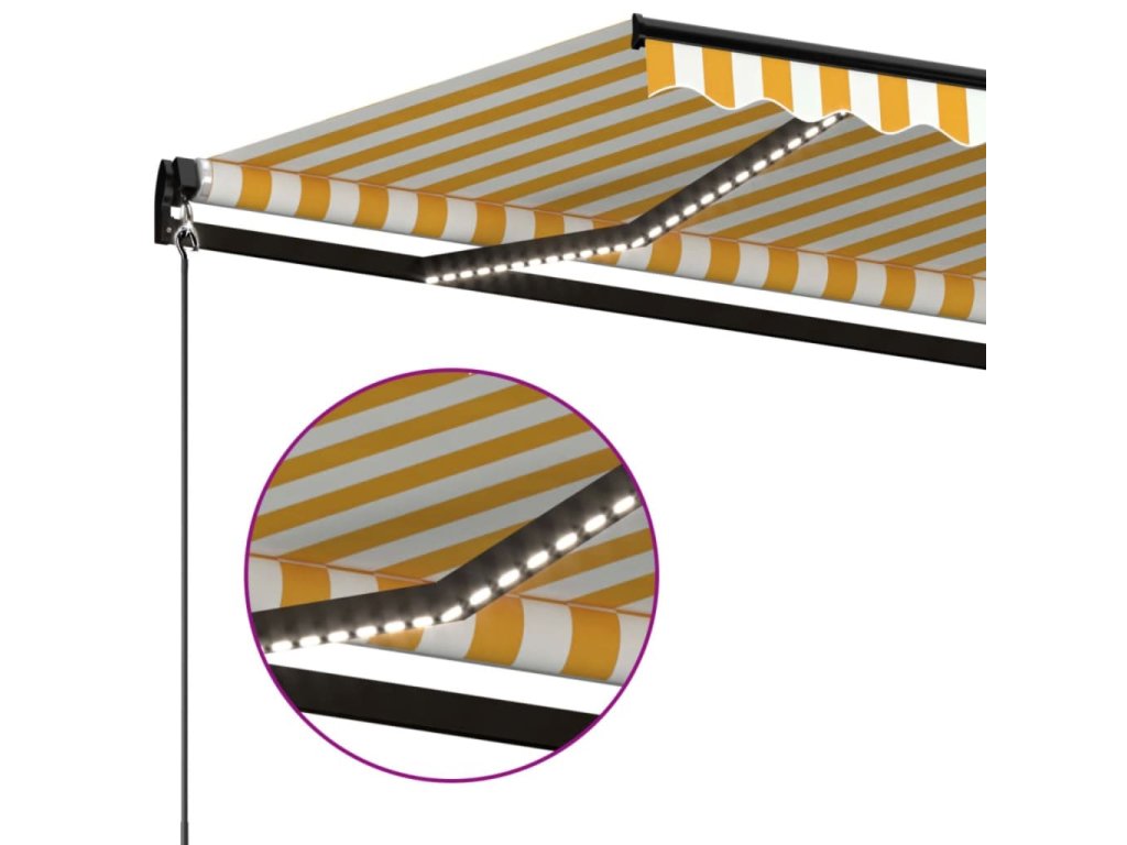 Tato markýza má hliníkový rám s práškovým nástřikem, který nerezaví, je lehký, ale přitom je mimořádně robustní. Zatahovací stříška je zhotovená z vysokohustotního polyesteru potaženého vrstvou PU, výborně tedy vzdoruje vodě i UV záření. Úhel a výšku si můžete navíc nastavit dle svých konkrétních potřeb. Markýzu snadno roztáhnete a zatáhnete pomocí dlouhé ruční kliky. A co víc, solární LED světla poskytují energeticky úsporné osvětlení v noci.