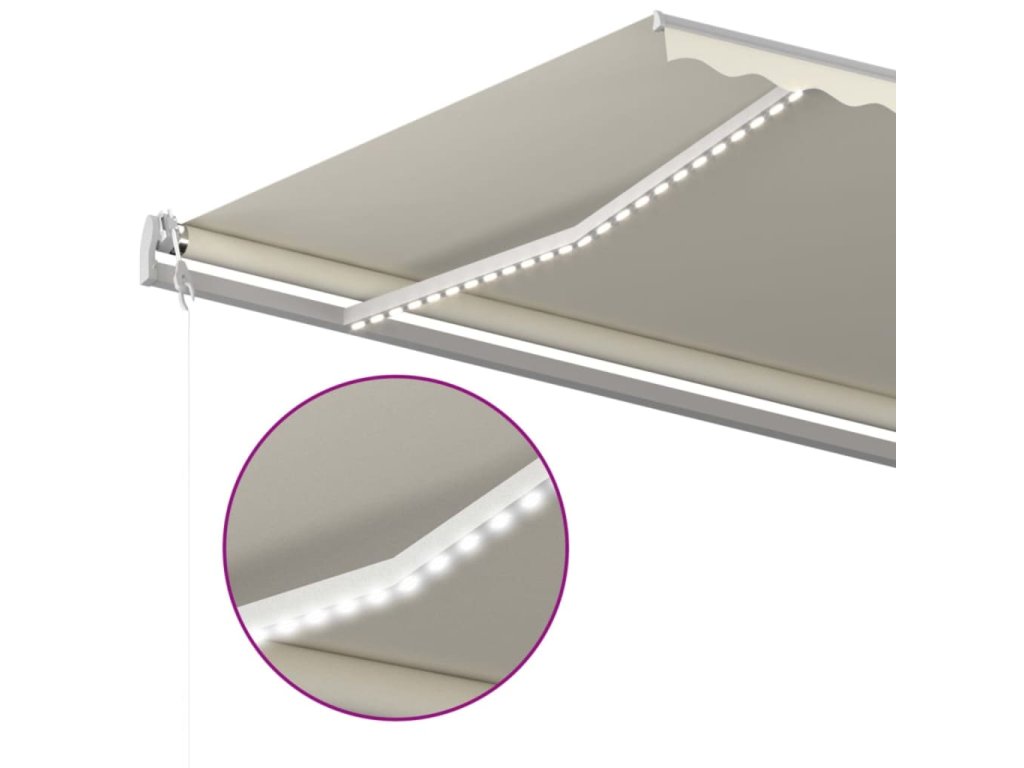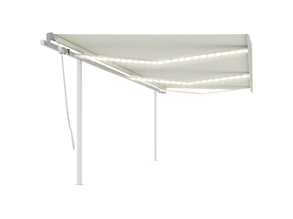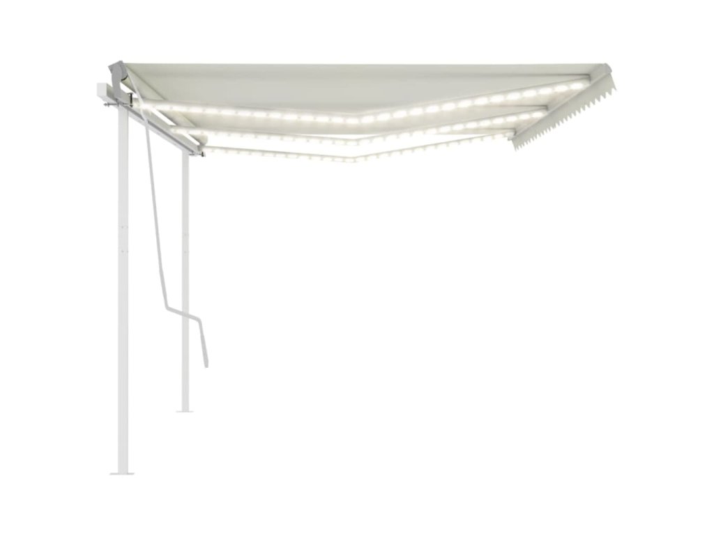 Zahradní markýza má práškově lakovaný hliníkový rám, který nerezaví, je lehký, a přitom tvoří velice pevnou konstrukci. Robustní železné sloupky jí přidávají na stabilitě. Zatahovací stříška je zhotovená z vysokohustotního polyesteru potaženého vrstvou PU, výborně tedy vzdoruje vodě i UV záření. Úhel a výšku si můžete navíc nastavit dle svých konkrétních potřeb. Markýzu snadno roztáhnete a zatáhnete pomocí dlouhé ruční kliky. A co víc, solární LED světla poskytují energeticky úsporné osvětlení v noci.