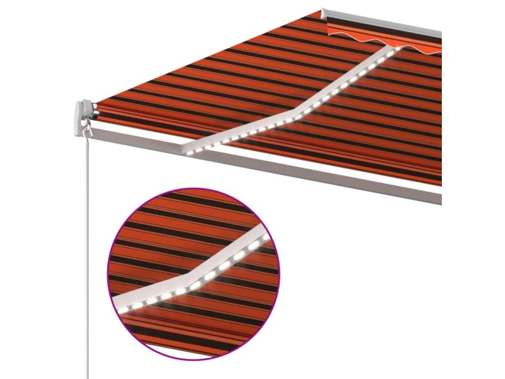 Tato markýza má hliníkový rám s práškovým nástřikem, který nerezaví, je lehký, ale přitom je mimořádně robustní. Zatahovací stříška je zhotovená z vysokohustotního polyesteru potaženého vrstvou PU, výborně tedy vzdoruje vodě i UV záření. Úhel a výšku si můžete navíc nastavit dle svých konkrétních potřeb. Markýzu snadno roztáhnete a zatáhnete pomocí dlouhé ruční kliky. A co víc, solární LED světla poskytují energeticky úsporné osvětlení v noci.