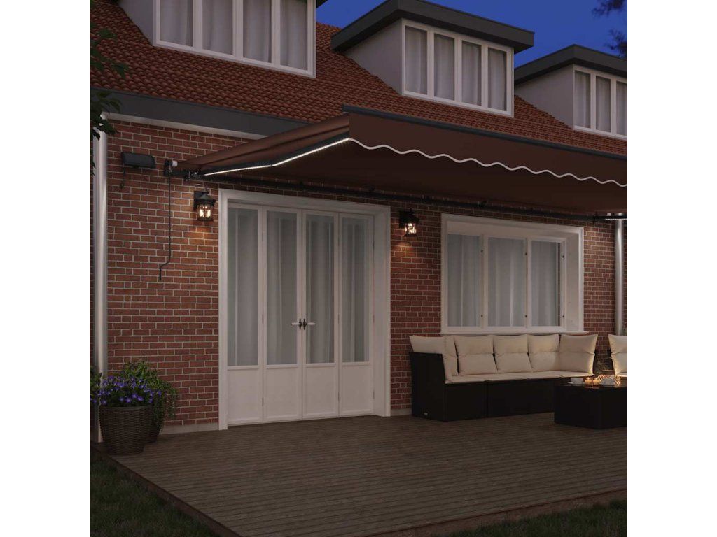 - LED světla: Integrovaná LED světla markýzy osvětlí váš venkovní obytný prostor a vytvoří útulnou a romantickou atmosféru po západu slunce.