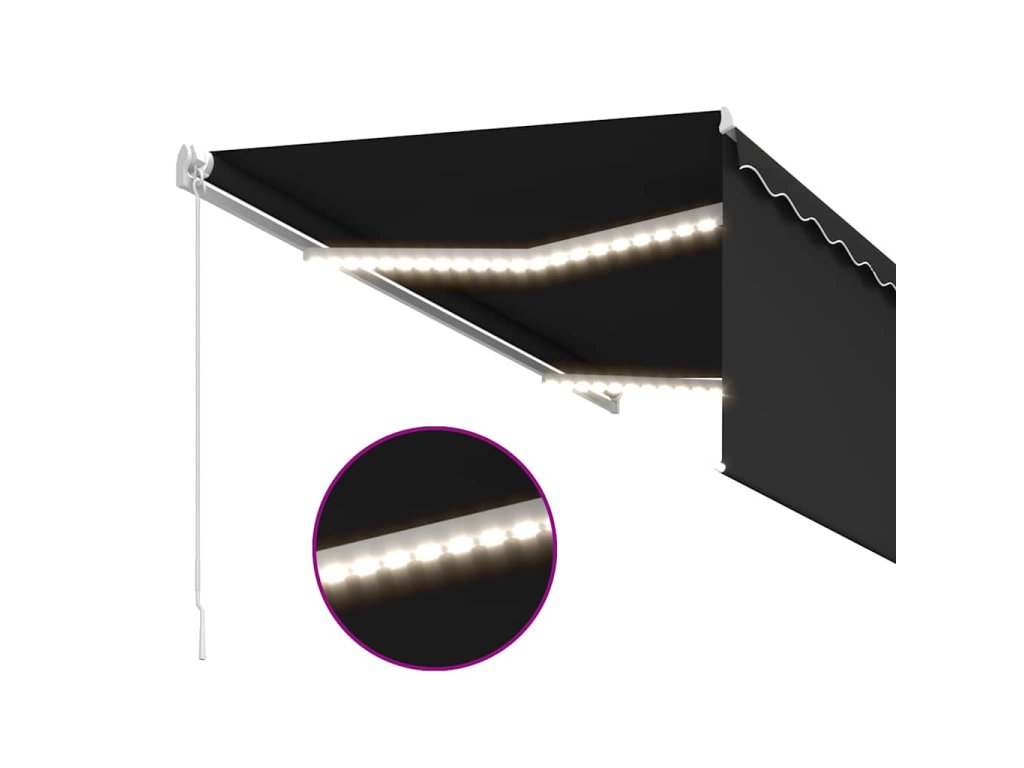 Tato markýza má hliníkový rám s práškovým nástřikem, který nerezaví, je lehký, ale přitom je mimořádně robustní. Zatahovací stříška je zhotovená z vysokohustotního polyesteru potaženého vrstvou PU, výborně tedy vzdoruje vodě i UV záření. Úhel a výšku si můžete navíc nastavit dle svých konkrétních potřeb. Markýzu snadno roztáhnete a zatáhnete pomocí dlouhé ruční kliky. A co víc, solární LED světla poskytují energeticky úsporné osvětlení v noci. Roleta vás ochrání před UV zářením a zároveň vám zajistí soukromí.