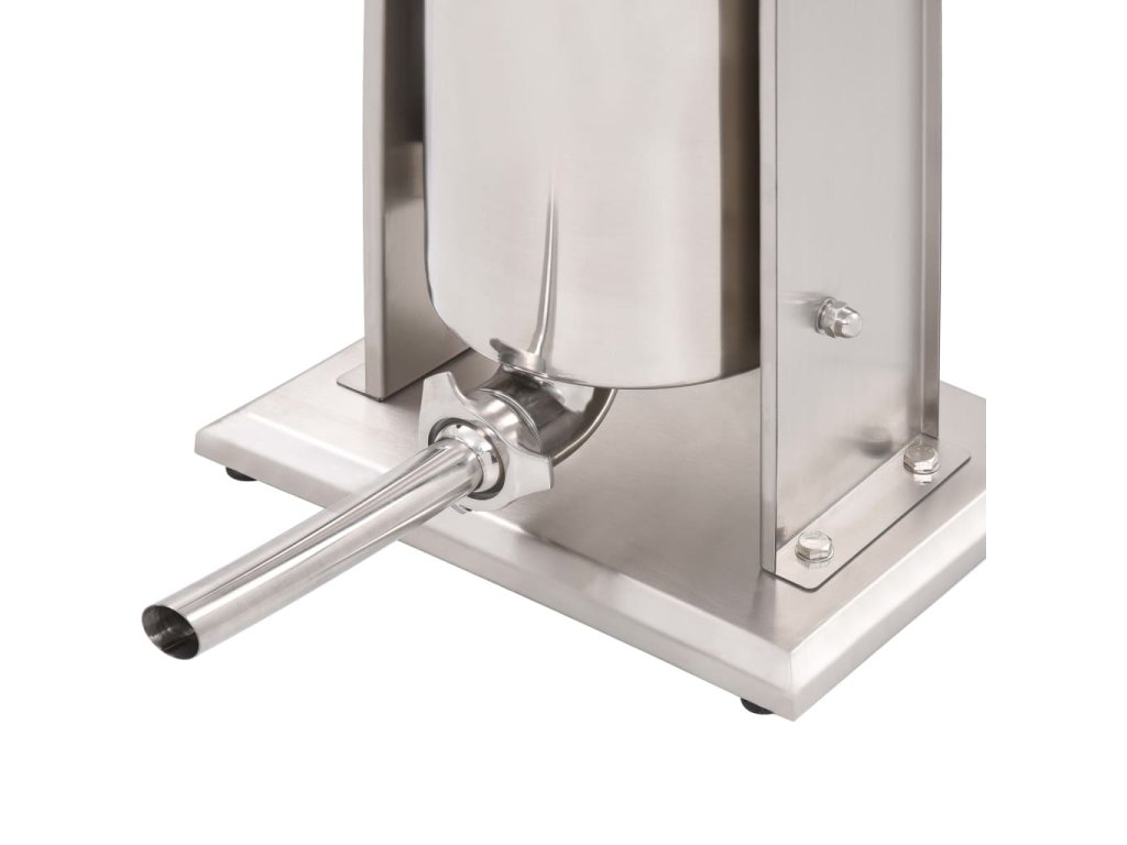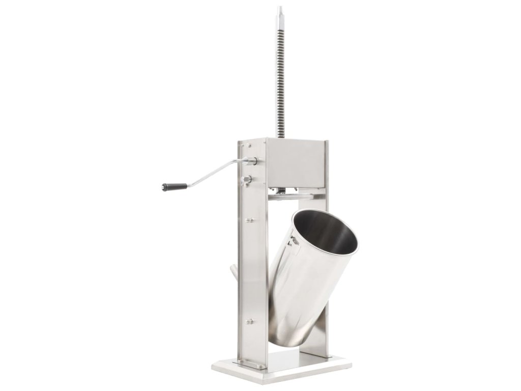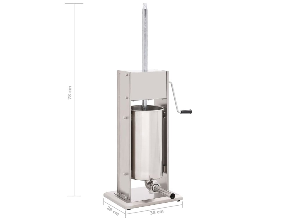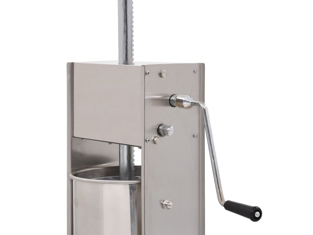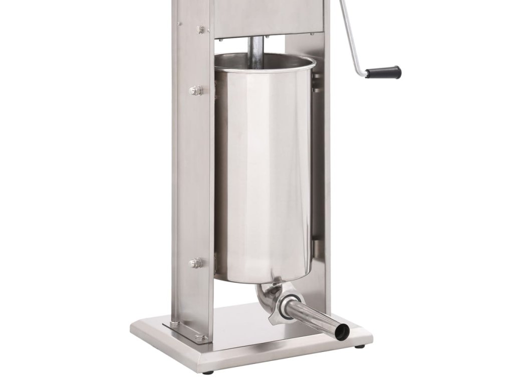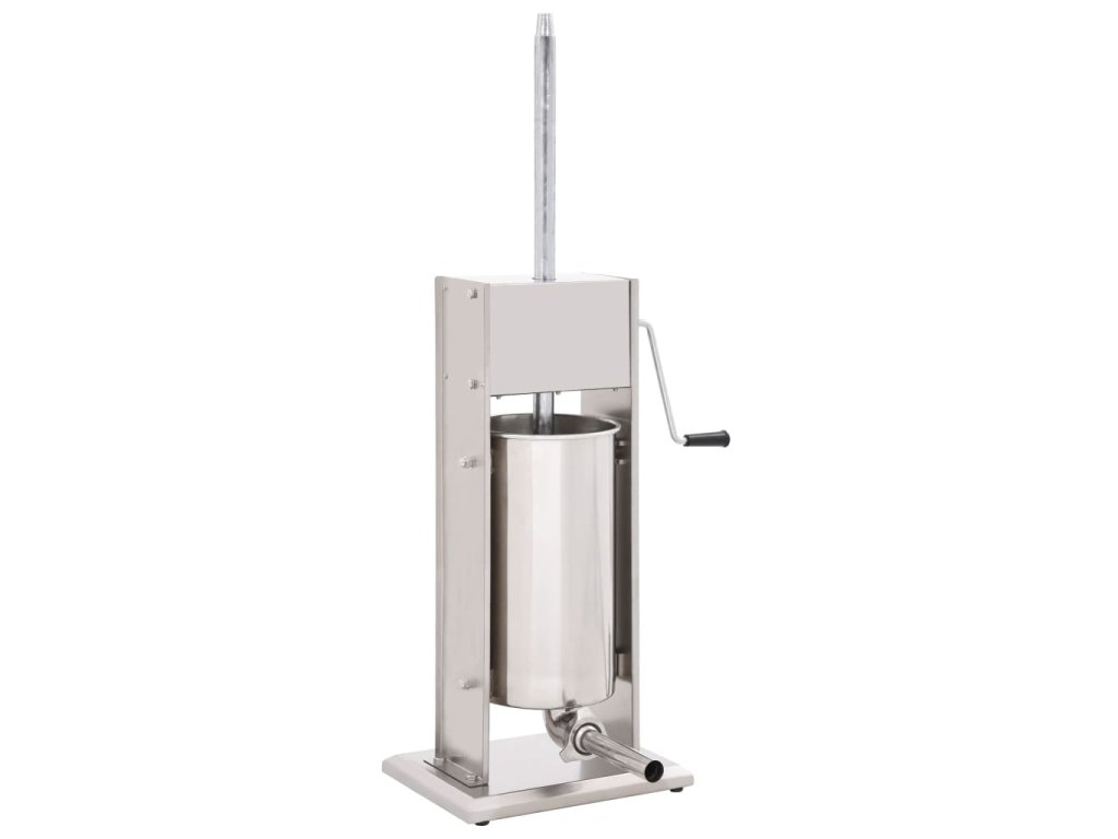 Tato nerezová plnička klobás je vybavená 15litrovým zásobníkem, který lze vyklopit či vyjmout pro pohodlnější plnění masem nebo čištění. Ruční klika pohybuje pístem, který protlačí maso skrz plnicí nástavec. Součástí balení jsou také 3 plnicí nástavce v různých velikostech pro uspokojení vašich nejrůznějších potřeb.