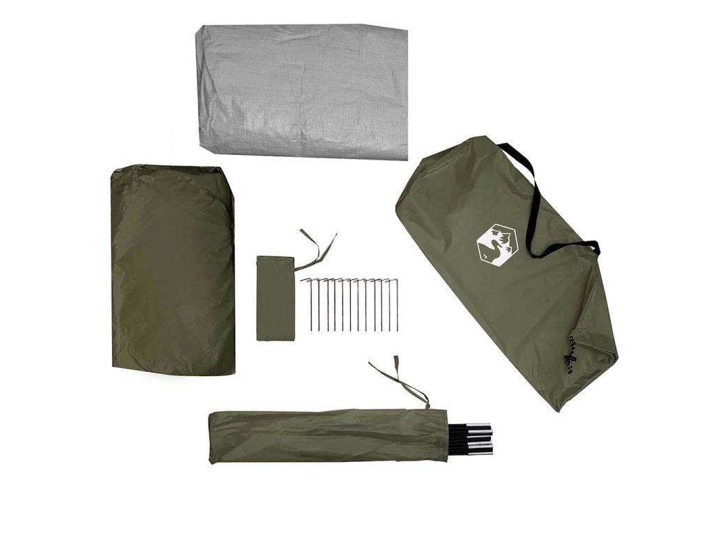 - Snadné stavění i balení: Díky vysoce flexibilním a lehkým tyčím ze skelných vláken a praktickému systému spojování pomocí kolíků a kroužků je stavění i balení stanu hračkou.
