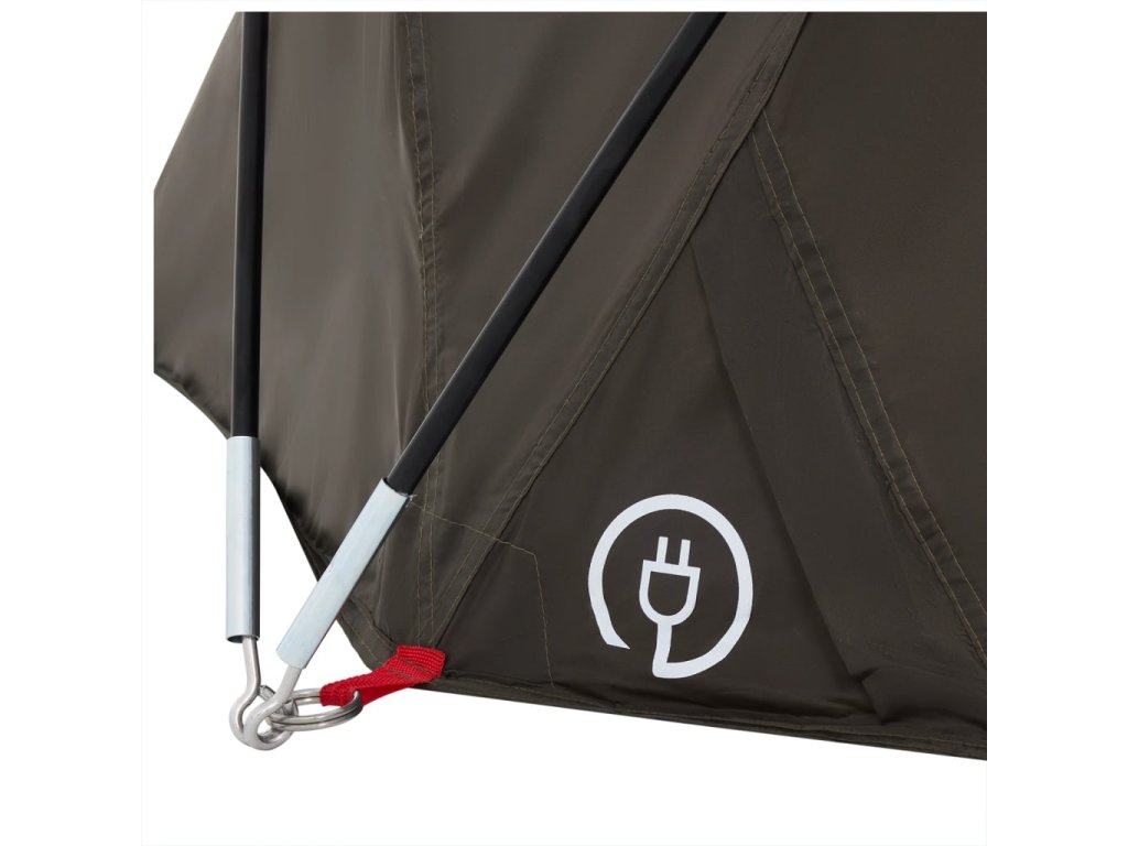 - Pohodlný přístup k elektrickému kabelu: E-port umožňuje snadné připojení prodlužovacího kabelu z externího zdroje napájení do stanu.