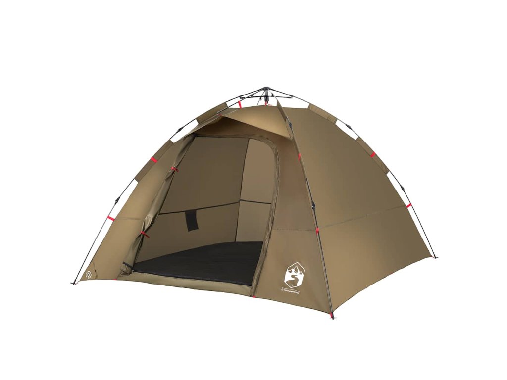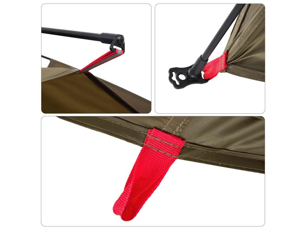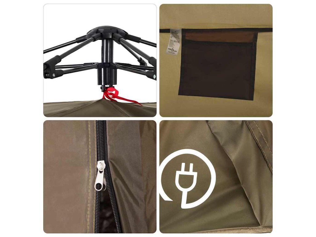 - Rychloupínací systém: Postavte stan snadno a bez námahy pomocí rychloupínacího systému! Stan položte na zem, roztáhněte předem sestavené tyče, dokud nezapadnou na své místo, a vše je hotovo!