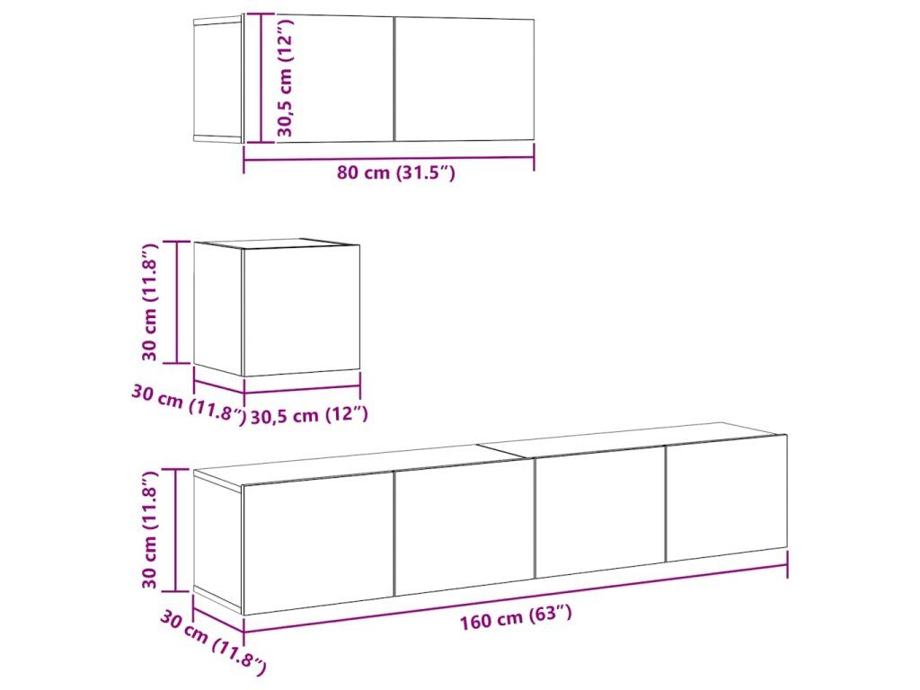 - 3x TV skříňka: 80 x 30 x 30 cm (Š x H x V)
