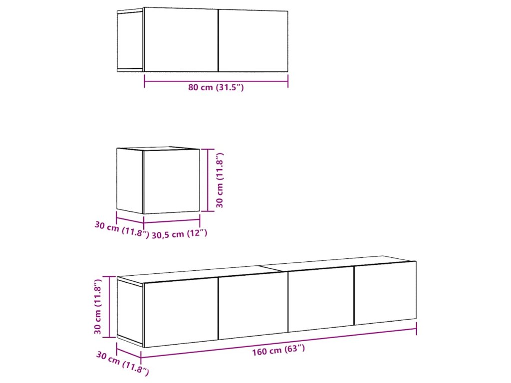 - 3x TV skříňka: 80 x 30 x 30 cm (Š x H x V)