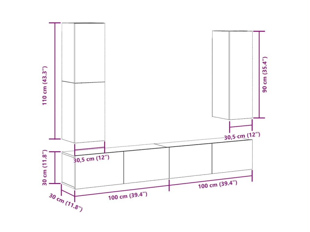 - 1x TV skříňka: 30,5 x 30 x 110 cm (Š x H x V)