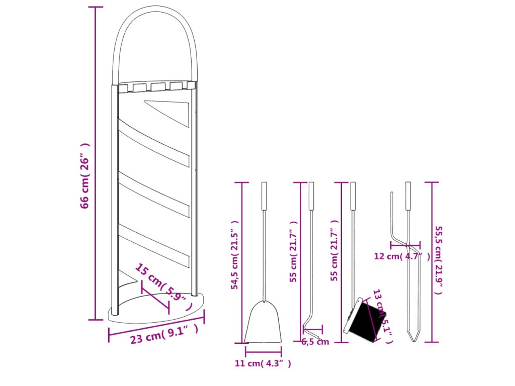 - Snadné použití: Stojan na krbové nářadí zajišťuje, že každé nářadí je řádně zavěšeno a vypadá velmi dekorativně a esteticky, zatímco oblouková rukojeť usnadňuje jeho zvedání a neunavuje.
